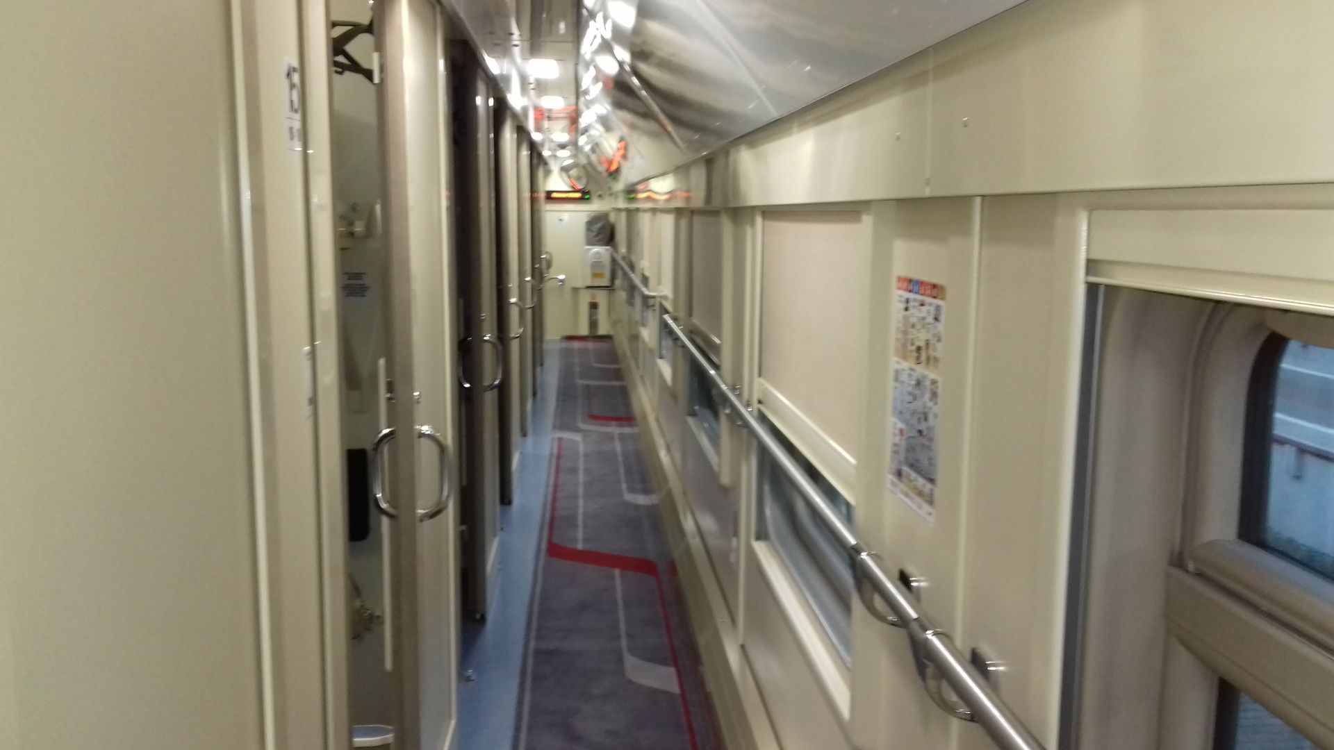 ридорчик узенький, даже при отсутствии верхних полок , в купе, места мало, вот он , потолок! Но, очень приятно удивила полка своей длиной, при моём росте 188см, лежать было комфортно .Хорошая плавность хода При посадке проводник предложил чай - кофе( на дворе было 3 ч ночи).Поездка составила 4 ч, Оценку поставлю 8/10, всётаки места крайне мало!
