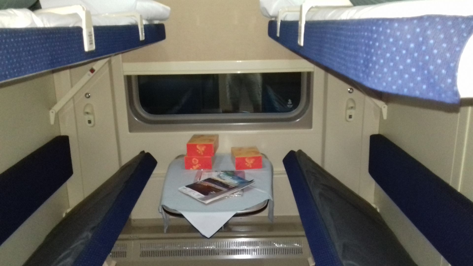 4) Чистота вагона - чисто, но пыльновато под полками (судил по убранному туда багажу). Туалеты чистые, всё в наличии.