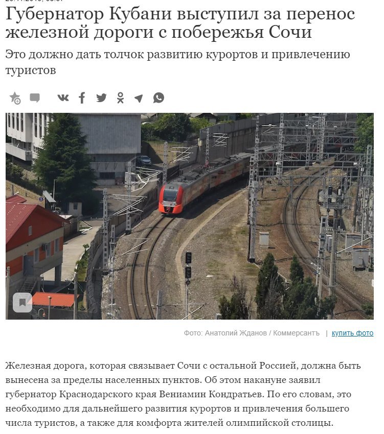 Подозреваю, что недовольные - это желающие освоить территории, занимаемые железкой. А губернаторское "развитие курортов" означает понастроить отели в тех местах, где когда-то ходили поезда.
