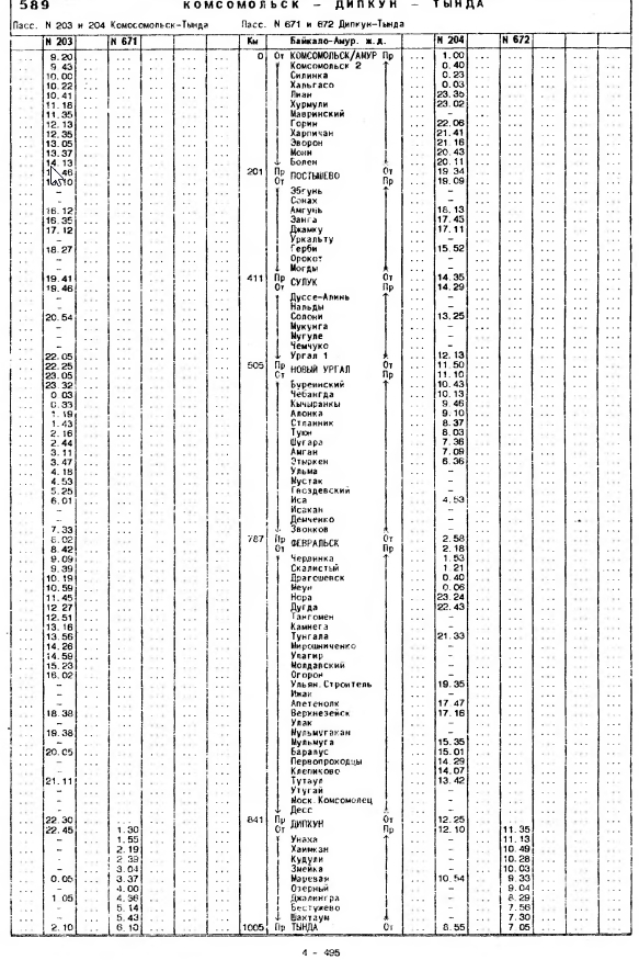 86 год. Нестыковка в книге - в 530 таблице есть п. 251/252 Февральск - Хабаровск ч/з КНА, с отсылом в табл. 579, в 579 таблице нет 251/252.