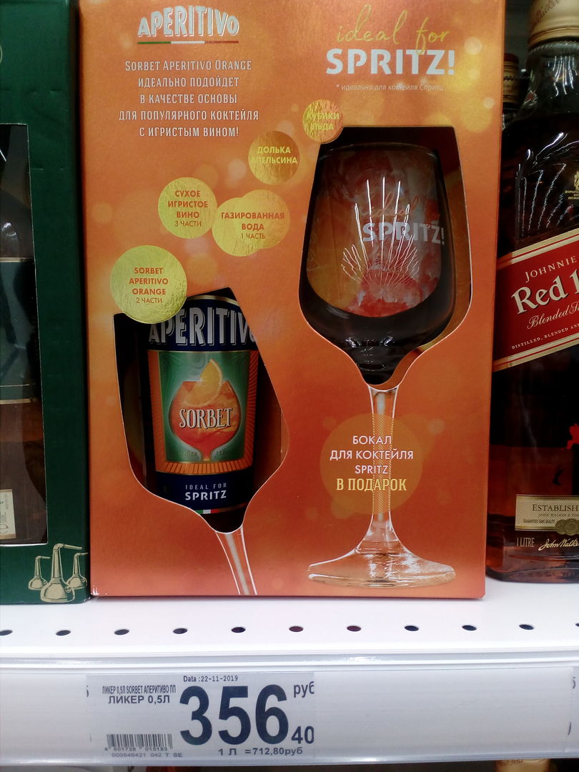 У нас "Спритц аперитиво" продают в 0,5л пластиковых бутылках за 31р. В "пятёрочках", правда не во всех. Безалкогольный. Штука прикольная.