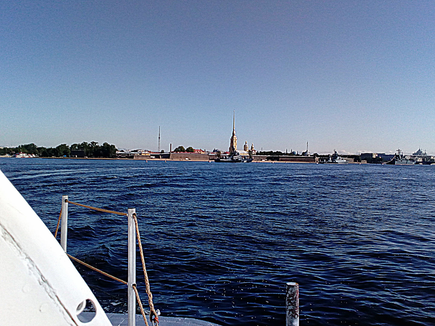 С противоположного берега Невы, непосредственно с поверхности воды Петропавловский собор производит несколько иное впечатление. Он кажется маленьким, словно игрушечным