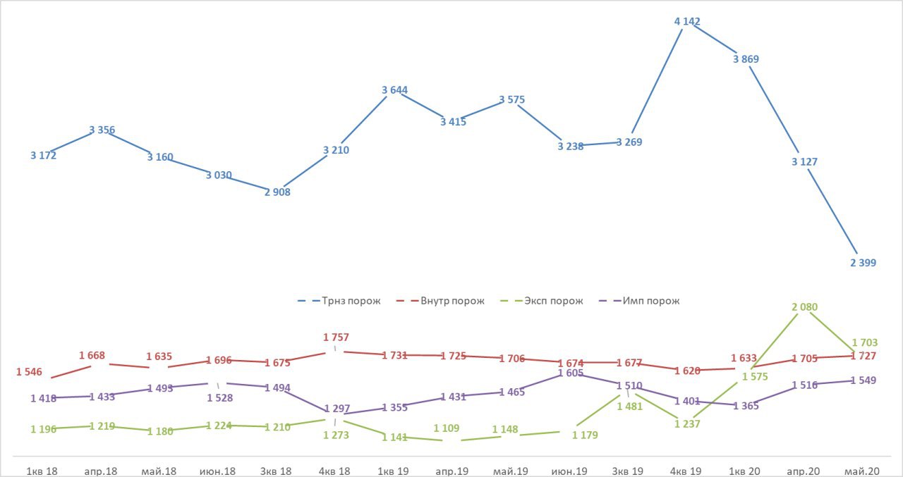 Цифры вполне ожидаемые. Если в I квартале импорт чуть просел (-0,8%), то экспорт увеличился (+2,9%). Например, поставки нефти в дальнее зарубежье прибавили 3%. Уголь не успел еще просесть, а у зерна и руды двузначный рост. В плюсе и транзитные грузы через порты.