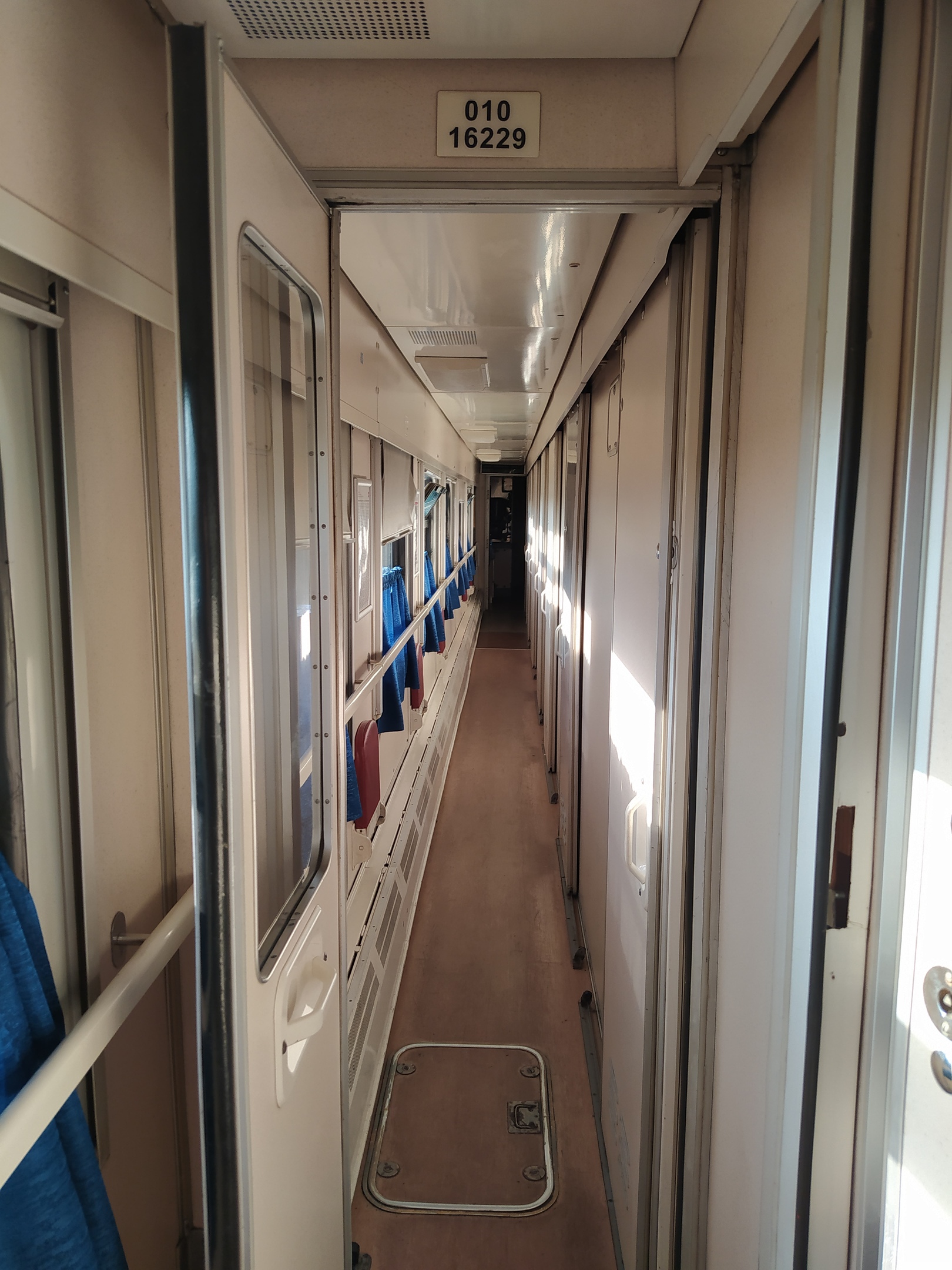 Купейная группа была сборной солянкой из разных типов вагонов, плацкарты все НМРы с туалетами у нерабочего тамбура. Вагон из Калининграда пришел пустой. Посадка по Минску была небольшая, вагон заполнился едва ли на 25%, но по Смоленску был забит под завязку, очень много народу садилось на промежуточных станциях. Причем мест от Смоленска до югов было много во все вагоны и пассажиры брали билеты до Смоленск в 16П, а дальше разбегались по всему составу. Доставила бабушка взявшая билет на верхнюю боковую до югов и на каждой станции просившая проводницу перевести ее на нижнюю полочку.