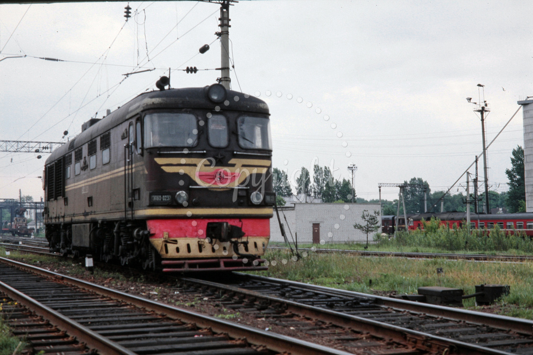JMT8425 - Russia SZD class ChME3-5920 near re-gauging depot at the Brest station (03.06.1990) - John Tolson.