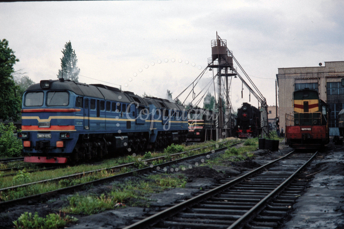 JMT8416 - Russian SZD class 2M62U-0235 on shed at the Shepetovka depot (25.05.1992) - New no. 16924706 - John Tolson.