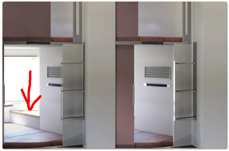 Два столика в каждой капсуле? (второй выглядывает слева от стрелки) Жаль, если сидение не предусмотрено. Надеялся на лучшее...