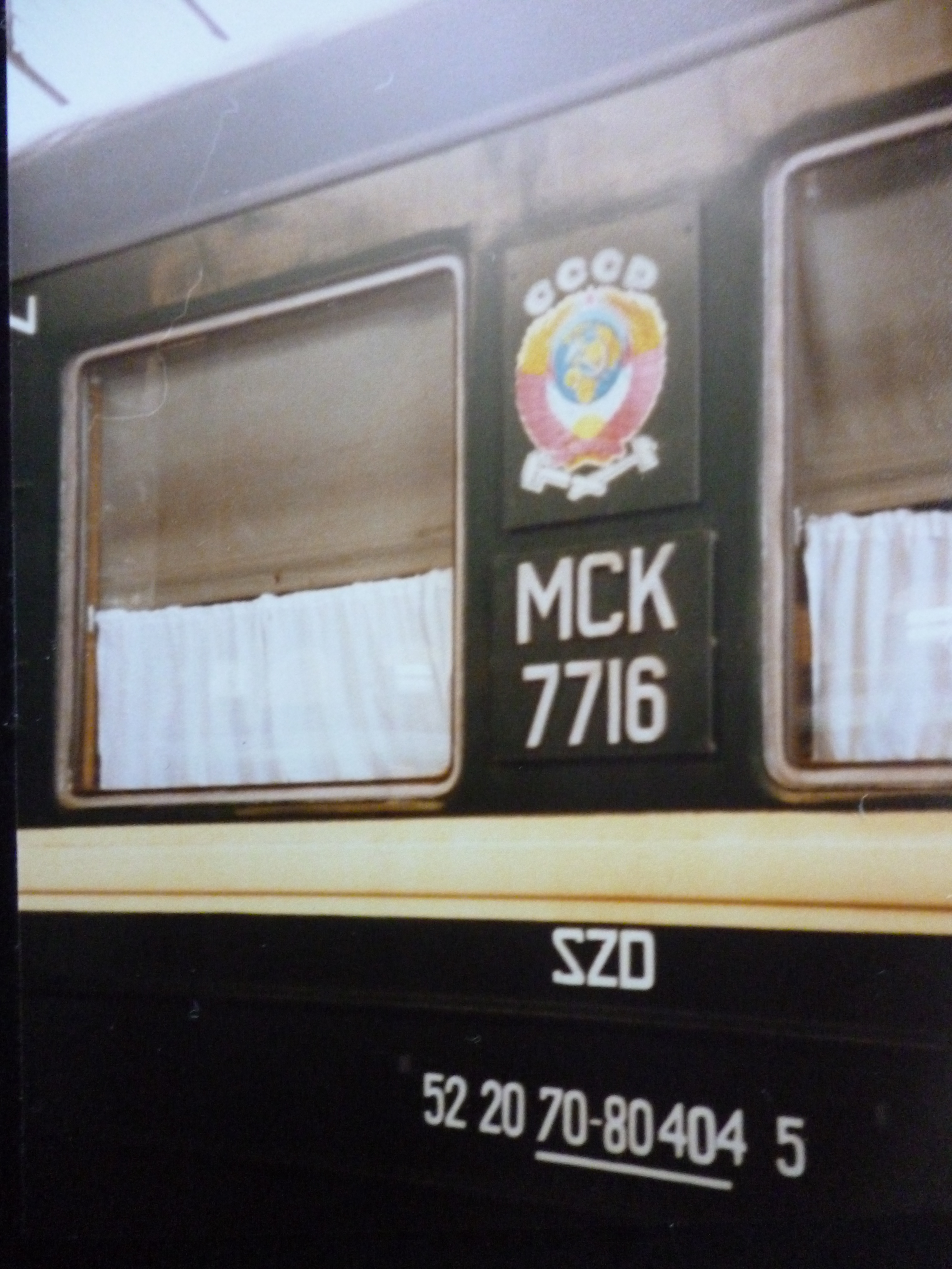 In maart 1995 maakte een reisgezelschap uit Nederland een treinreis naar Kaliningrad. Het koersrijtuig, Bcm 016 (volledig 5184 5070 016-7), staat hier te wachten op het normaalspoorgedeelte van het stationsemplacement van Kaliningrad, terwijl breedspoorlocomotief RZD TEM2 1029 op de achtergrond rangeert.