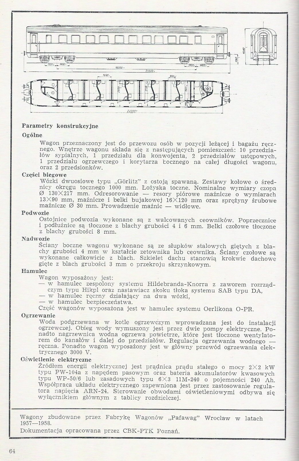 Coś tam się znajdzie: Katalog wagonów osobowych, wydany przez Ministerstwo Komunikacji w 1974 roku. Podana tam jest informacja, że jest to wagon 2 klasy, ale były też wersje 1/2 klasy (nie wiem, czy nie powstały w wyniku przebudowy kilku środkowych przedziałów na 1 klasę). Wnętrze praktycznie nie różniło się, tylko w przedziale 1 klasy by tylko dwa łóżka, zamiast trzech w klasie 2.