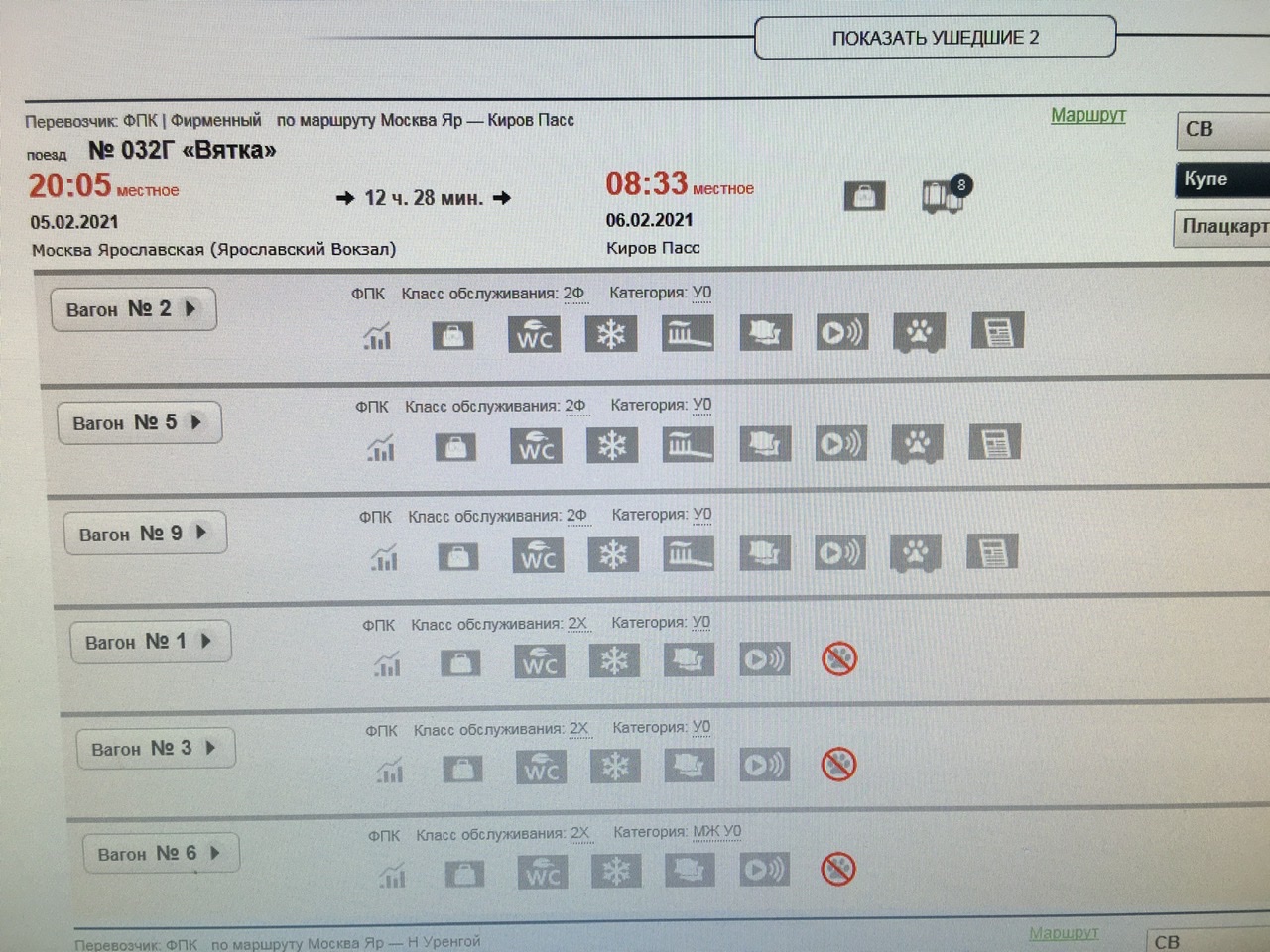 Но почему поезд ФИРМЕННЫЙ, если все вагоны НФ? А фирменную наценку не забыли.2024675/2024900 » 05-02-2021, 15:37:Разница в цене 37 рублей - за портал «Попутчик». В бывших ТКС вагонах нет этого попутчика. А по услугам 2Ф и 2Х идентичны, просто коряво вагоны ИВЦ в Экспресс завели.Железнодорожный:Ценник почему то тоже интересный. Чем же отличаются вагоны 2 и 5 от 7 и 9 ?Может ли кто объяснить чудо чудесатое? Сегодняшняя Вятка идёт как фирмач, ценник соответствующий, как обычно, самый дорогой на участке Киров-Москва. А вот НИ ОДНОГО вагона фирменного в ней нет. Сайт пида их все показывает как НФ, даже СВ.