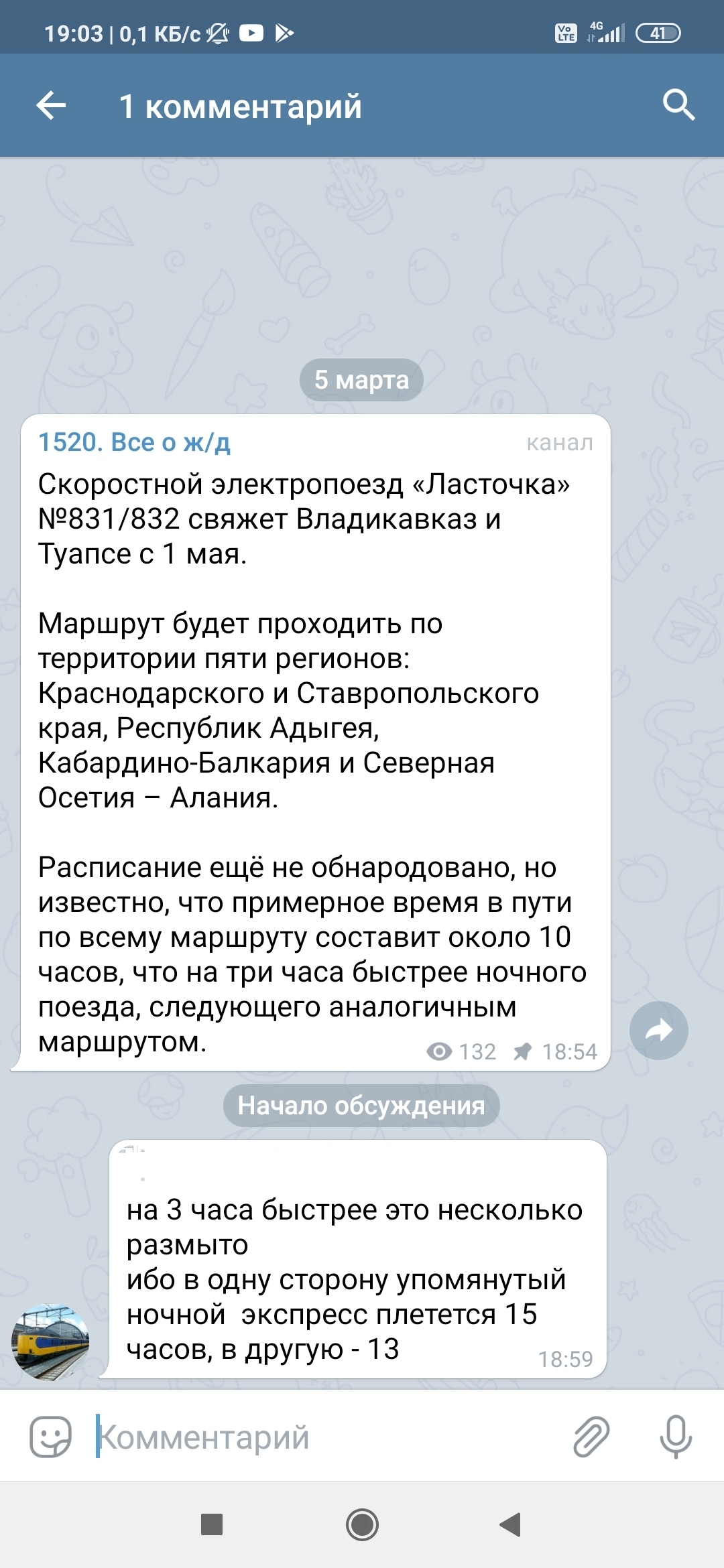 Владикавказская "Ласточка" будет обслуживаться поездом с пригородной компоновкой "Стандарт"?Вроде как в планах позже продлить её до Адлера и поставить на маршрут "Премиум", только где его взять? Все "премиумы" на С-КАВ при делах. Разве что ЭС1П получить. Кто-нибудь знает, есть ли в планах поставка ЭС1П на С-КАВ? Я не нашёл. Да и с учётом графика придётся на маршрут выводить 2 поезда, т.к. один не успевает сделать оборот. PS. Очень надеюсь, что обкаточно-опытный график не станет постоянным, ибо жуть как замедлен в нечётном направлении и не согласован по Туапсе..