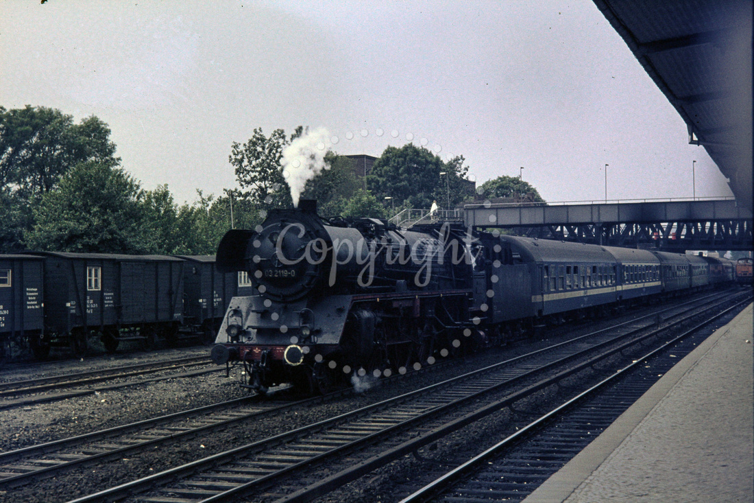 GHT12045 - East Germany DR class 03 - 4-6-2. 03 2119-0 at Berlin Ostkreuz station. Builder Hen 22170-1933 - Passes on 12.36 Berlin Ostbahnhof to Dresden (23.07.1974).