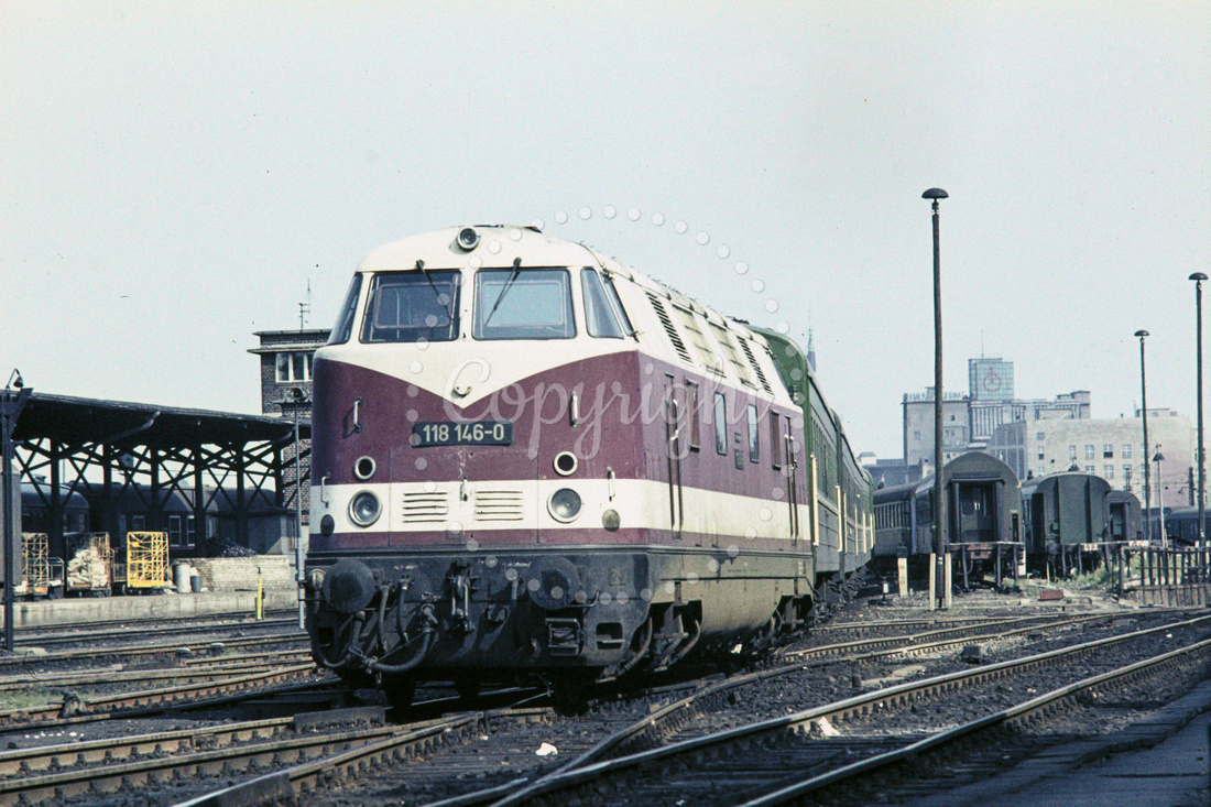 GHT12193 - East Germany DR class Bo-Bo 118 146-0 at Berlin Ostbahnhof station (22.07.1975) - Builder GH Taylor.