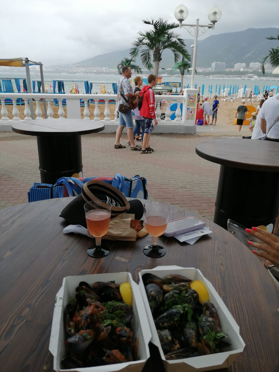 А сейчас в связи с непогодой в Геленджике он шлёт мне фотки посещения мест общепита -