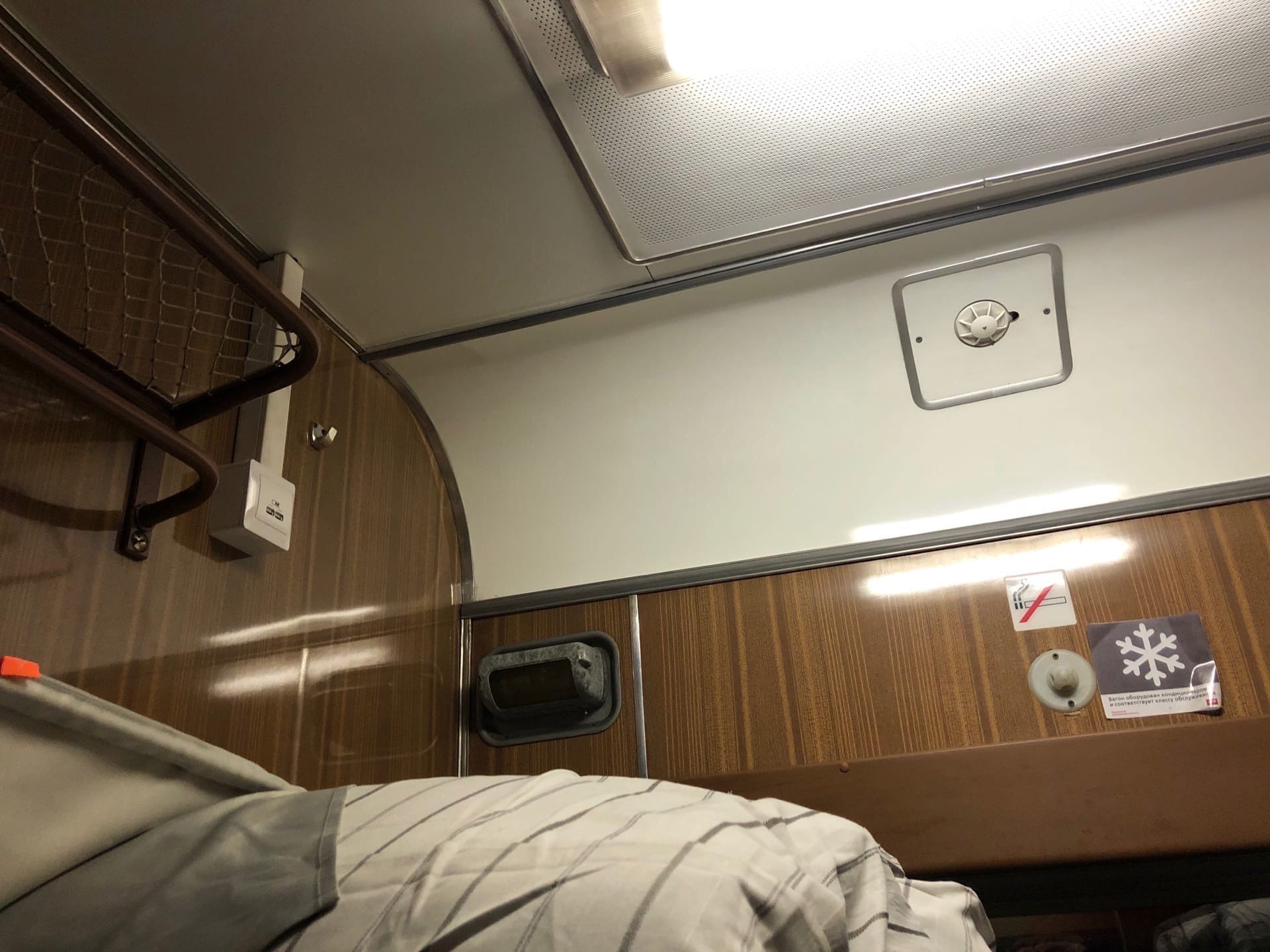 Gfif » 14-08-2021, 16:36:Ещё по теме. Любопытный вагон должен отправиться сегодня обратно из Москвы в Петрозаводск в 160 поезде (купейный вагон № 3 в составе от Москвы, № 8 - при следовании из Петрозаводска). Это вагон 010 11162 постройки завода Аммендорф, из поздних. Табличка заводская, правда, у него не своя, но там пробили 96 год постройки. Поскольку вагон не петрозаводский, а с КЛГ жд, про него ничего сказать не могу. Сам он без КВР, что важно. Но имеет последствия очень необычного по интерьерным решениям ремонта, очевидно КР-2 в Воронеже в 2014 году (после него лишь КР-1 в Калининграде в 2019 году). Заводской пластик сохранен примерно на половину. Все купе снабжены розетками и верхние полки - usb-разъемами. Вместо родной фурнитуры в качестве спинок достаточно спорные по внешнему виду конструкции (на фото). Вагон оборудован ЭЧТК, что очевидно и позволило поставить его в 160/159 поезд. Хотя, как я понял, он там не постоянно. Но поймать и проехать попытаться можно, учитывая, что поезд обслуживает четыре состава, плюс он в общем обороте с ночным 11/12 Петрозаводск - Санкт-Петербург.