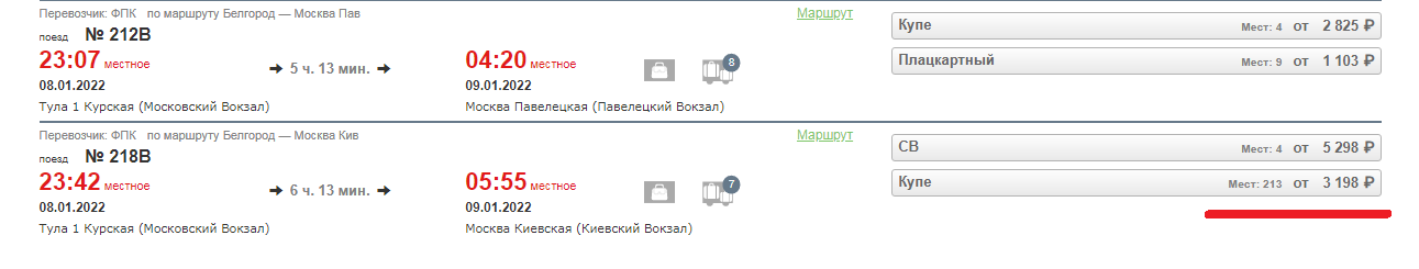 Вот желание отпало, при том, что я только купе рассматривал, 2 вз. 2 детей.serg: При желании можно 30 декабря уехать Ласточкой в 15 часов за 1 423 рубля или 31 декабря в 4 утра сидячкой уехать за 921 рубль или в 10 утра плацкартом за 1 665.