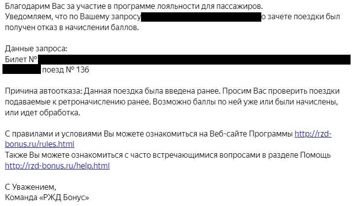 Пришло письмо на почту, но при этом баллы начислили. Само собой, данные о поездке были введены один раз. Никаких "дублирующих записей" не было.