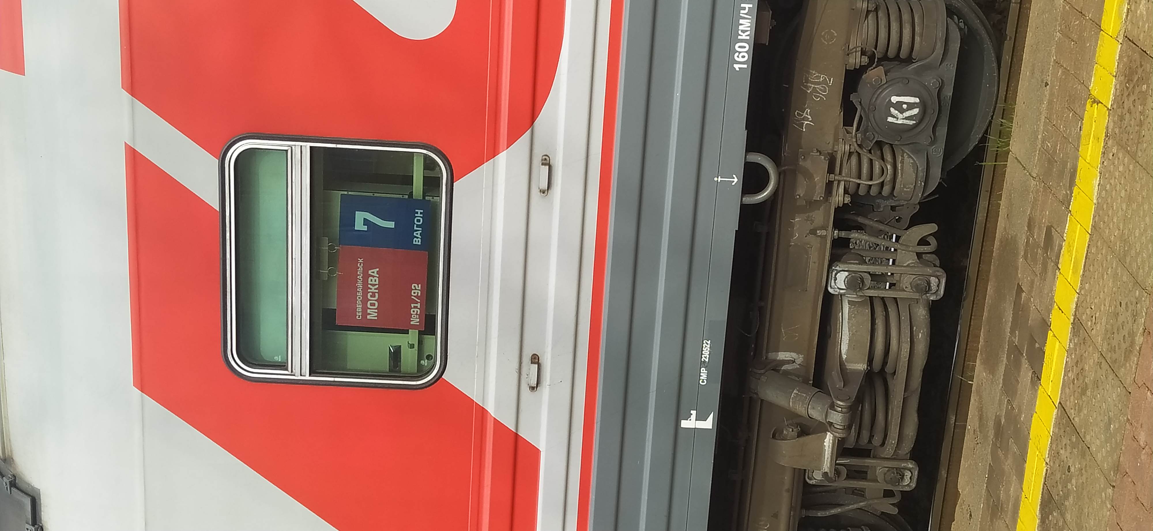 Составность поезда 17 вагонов: 0-6 купе-сцепы, 7-13 плацкарт НМР, в хвосте пермские наутилусы 18П и 19К. Ресторан-немец между 7 и 8 вагонами. В сцепах электронные трëхцветные маршрутные таблички, в плацкартах простые красно-синие.