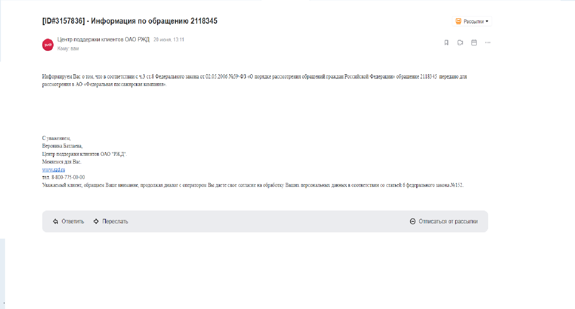 Мурзюша: Написать можно в виртуальную приемную РЖД
