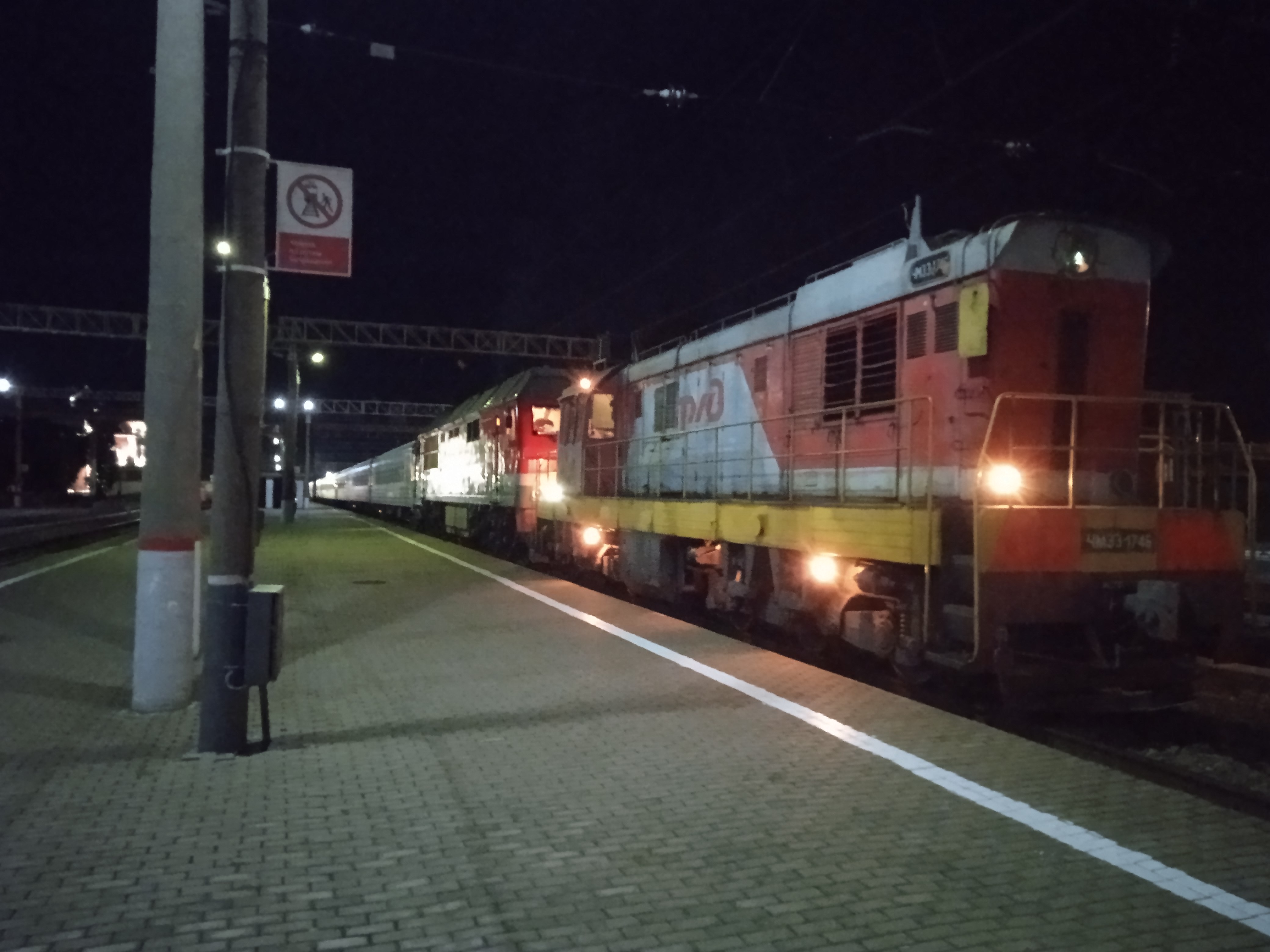 А-а-а, вот даже как!Минеральные Воды:Не поездными локомотивами а манёвры по флажкам. Обязательно должна быть радиосвязь.ЕвРо:РЖД запретило отцепки вагонов от пасс. поездов поездными локомотивами. Подобное на фотографии я видел в 2019 г. на ст. Омск-Пасс., где ЧМЭ3 елозил с ЭП2К.Михаил И: Судя по маршруту, это наверное вагоны Белгородские вместе с БСом отцепляют.