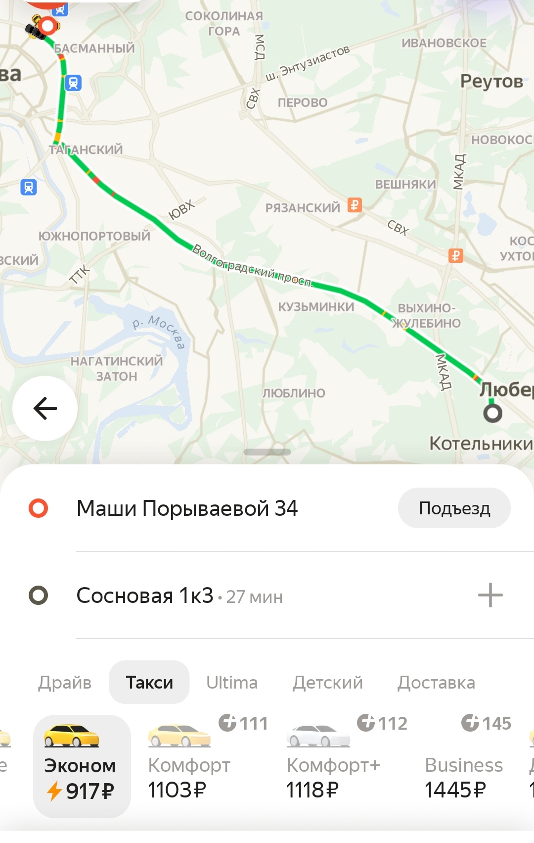 Погонял сейчас тарифы в Ятакси на одну из своих самых дальних поездок по МСК