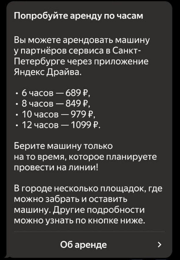 Что касается Каршеринга в такси, то все- таки на 12 часов. Это не выстрелит. Ибо уже совсем недавно было с бмв 2 серии, которые работали подобным образом. И полугода не прошло как закрыли проект