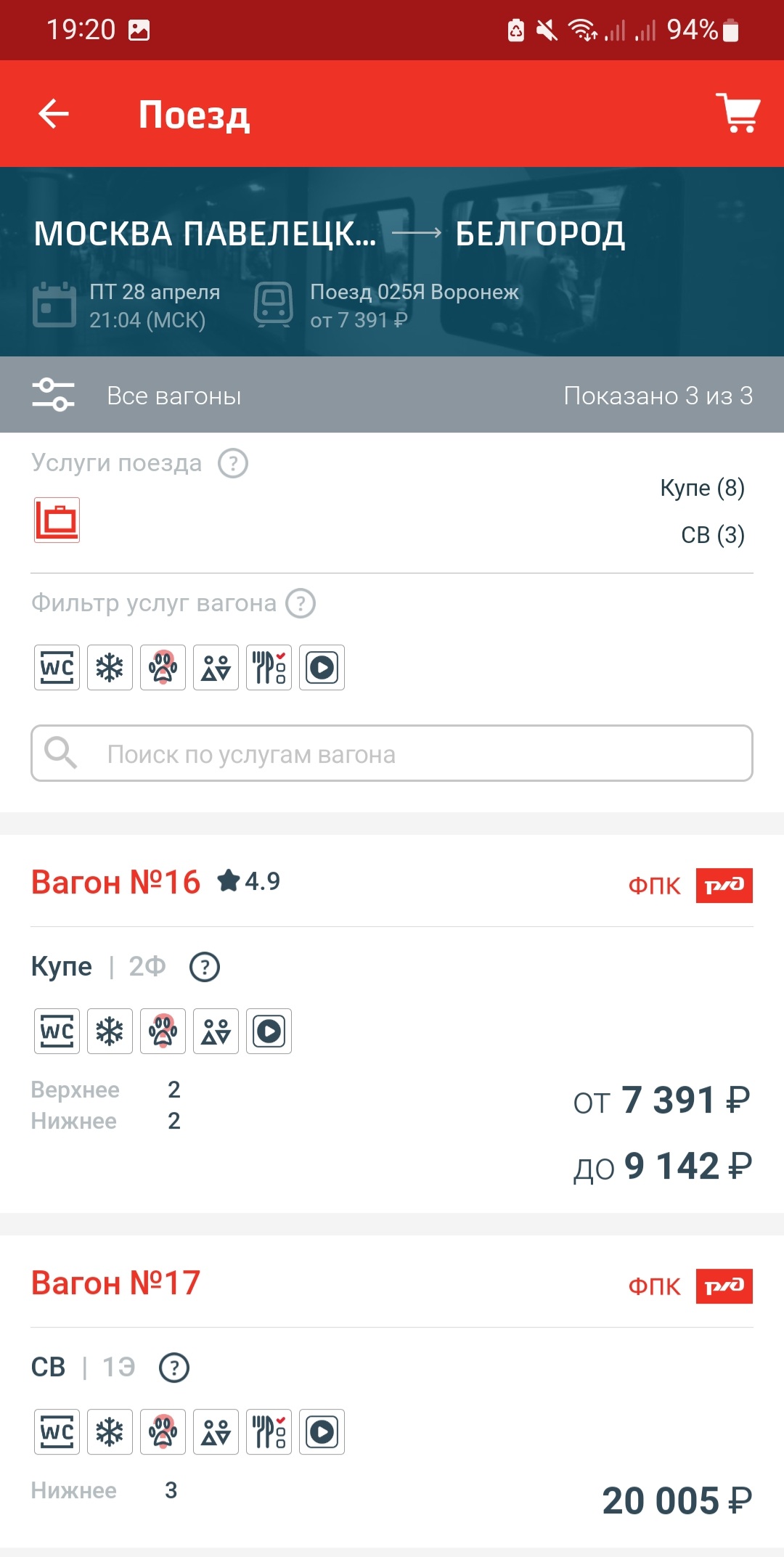 ласточке, что на машине. Про поезда с Киевского и Павелецкого не говорю уже.И 2 места в СВ вывалилось из брони по 18791.Придача:Уже 10700. Все хотят в Воронежv_gildenberg: Вот на сегодня нижнее место в 25 поезде до Воронежа 9 с чем то тысячна Воронежские двухэтажки на понедельник осталось всего несколько мест, при чем как ВРН-МСК, так и обратно