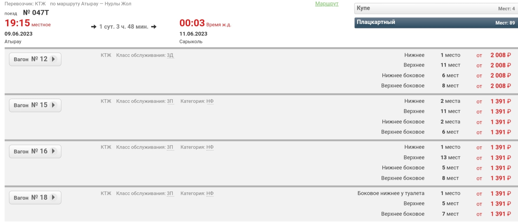Продолжаю наблюдения ... сегодняшний поезд 047Т увёз из Атырау воздух на 66 местах, на последующие даты в Астану "мест нет".