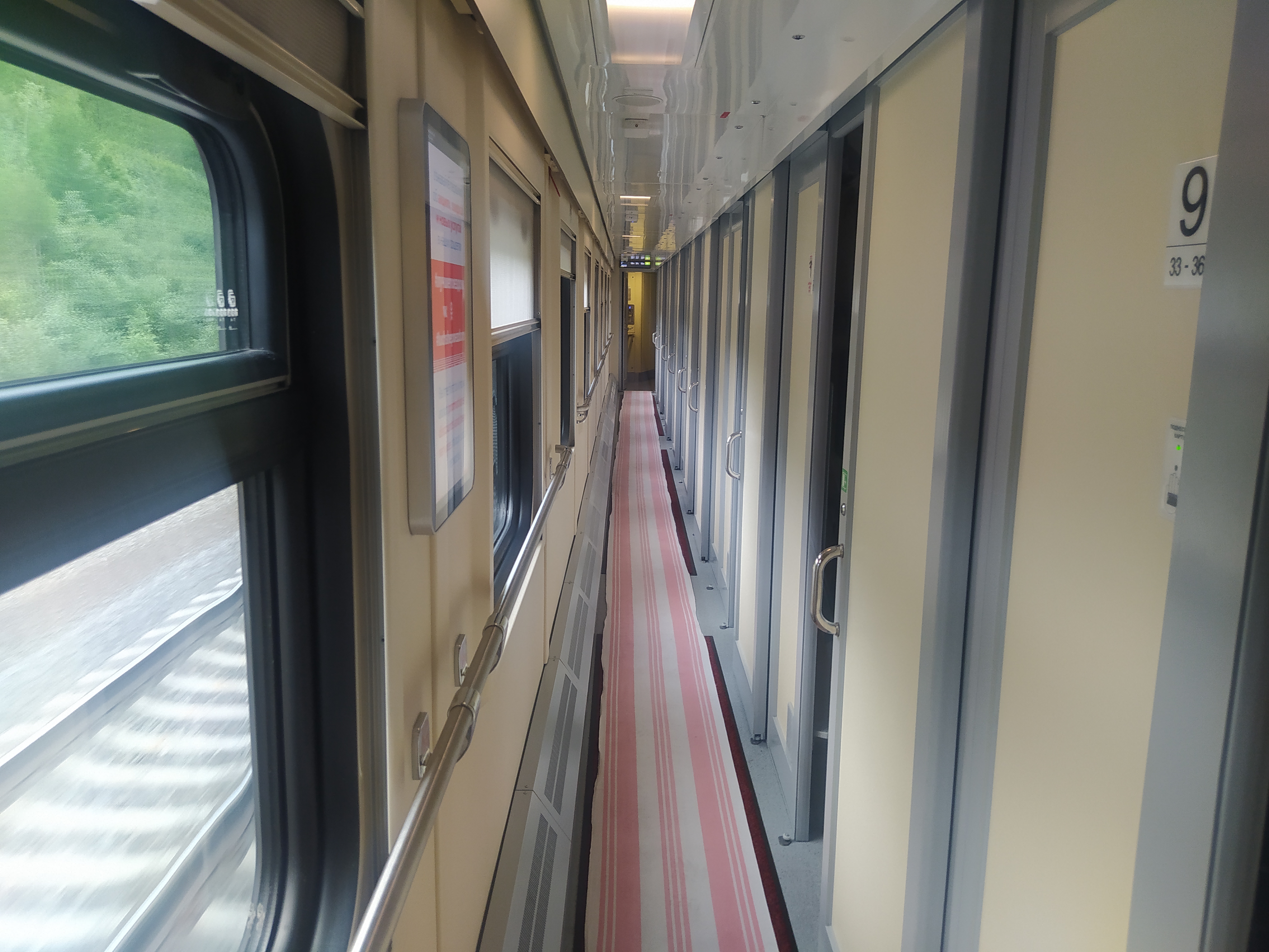 Здесь посадка во все вагоны. Посадка не сильно большая была - отправились примерно с 200 свободными купе и 300 плацкарта. До Лены будет посадка по составу, но не особо большая, а в Лене практически аншлаг. До туда едем без соседей, там подсядет один человек, а второй в Гидростроителе. Если конечно сайт не тупит опять...