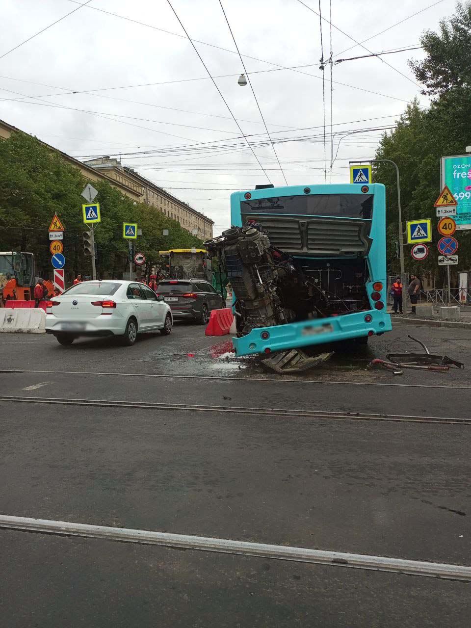 В Питере из-за ямы на дороге у автобуса вывалился двигатель, происшествие произошло на перекрёстке проспекта Стачек и улицы Трефолева.
