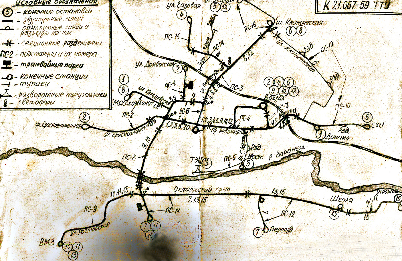Почему трамвай № 9 не обозначен на левом берегу? Карта 1959 года.