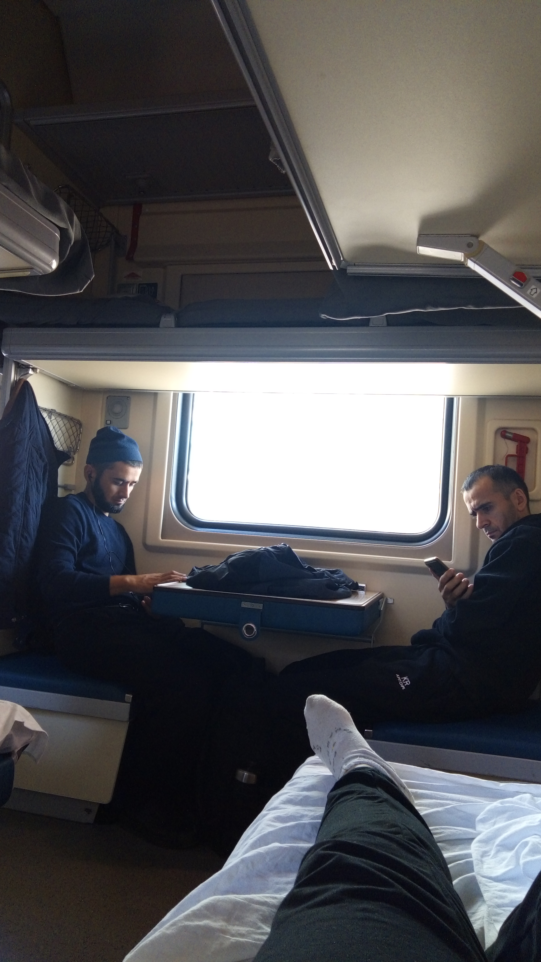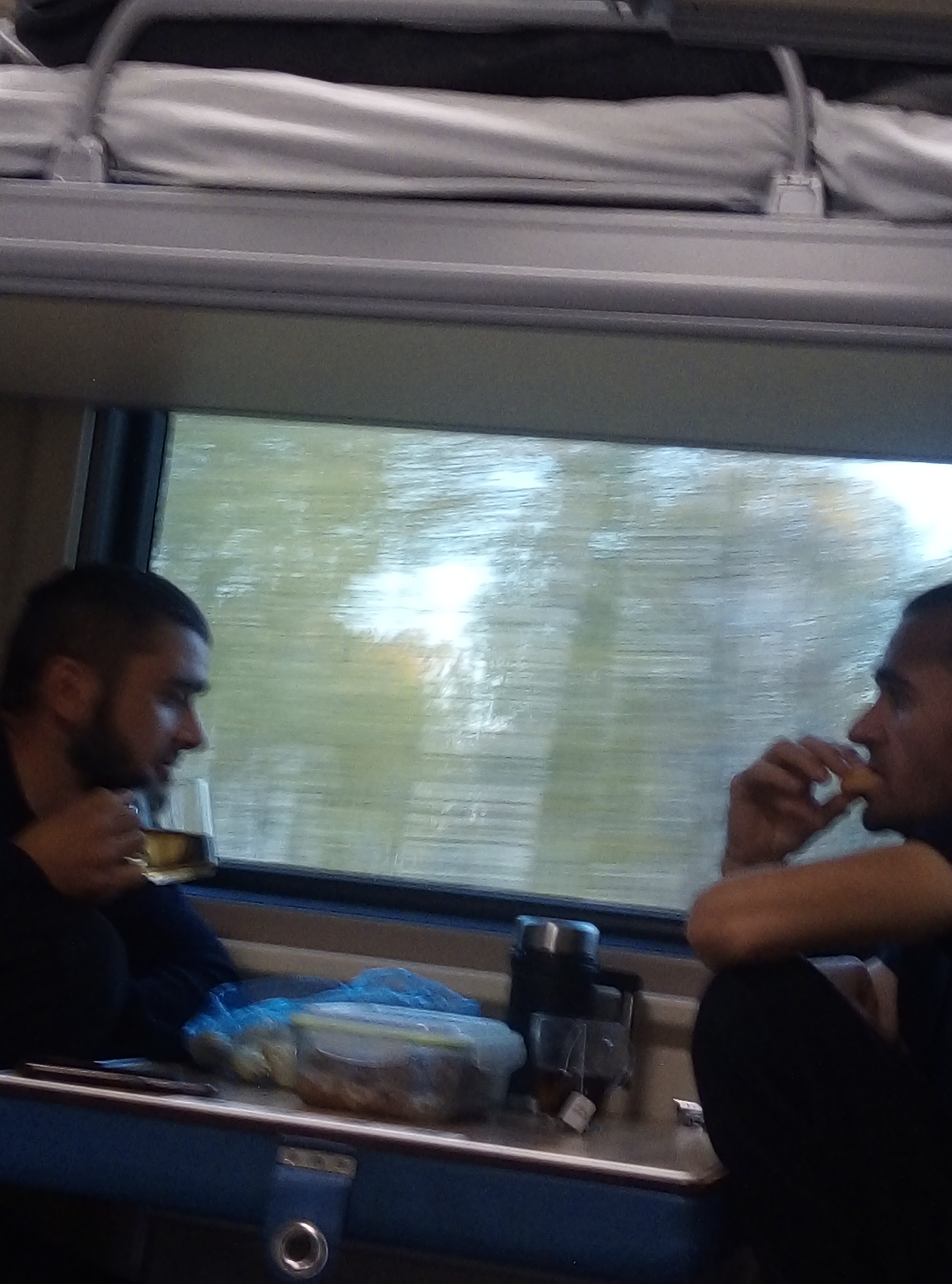 Первая ночь в плацкарте прошла средне. В соседнем отчеке мужик кашлял, как паровоз, а через отсек в 3 ночи тетки громко смеялись, разговаривали. Спасли беруши. Под утро стало душновато, открыла окно. Люблю свежий воздух. В Новосибирске сменится мой отсек, нерусские выйдут и мужчина с нижней полки. Он сначала мне показался красивым,о потом разглядела, мужик обычный. В вагоне почти одни мужики, в соседнем вагоне 50 на 50. Я поняла, что длительная езда скучно, мне интересно почаще делать пересадки, двигаться, гулять, смотреть новое. Шило в попе с детства. В принципе есть нормально, слегка скучновато, интернета почти нет, кроме стоянок. Почитываю детскую книжку.