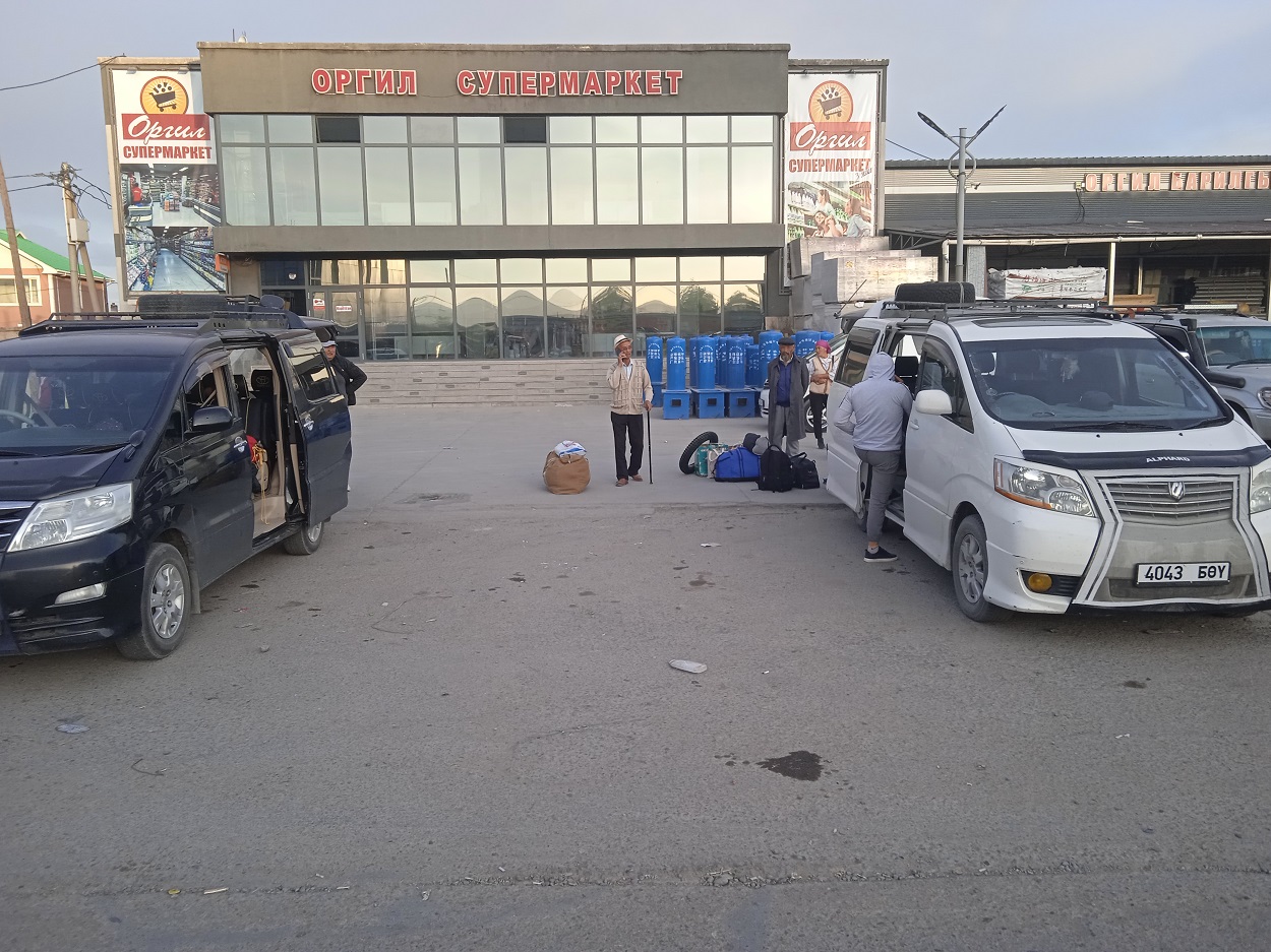 Утром рано пошел из гостиницы в направлении выезда из города, и напротив одного магазина увидел, как казахи пакуют вещи и рассаживаются в 3 микроавтобуса. Подошел к ним, они сообщили что едут в Астану и довезут меня до Кош-Агача, за 2000 рублей. Торговаться было неуместно, да и все складывалось по плану и по времени. Через полчаса машины тронулись, и к 8.00 мы приехали к закрытой границе, работает с 9.00, это был понедельник. Впереди стояло 45 машин, почти все с Монгольскими номерами, редко с казахскими. И справа за поселком была очередь из новых тягачей и новых транзитных иномарок, следовавших в Киргизию на растаможку и далее в Россию. (Л- логистика). Открылась граница, много машин сразу поехало под шлагбаумы, очередь заметно продвинулась. Меня пересадили в другую машину, которая следовала в Кош-Агач, но находилась уже под шлагбаумом. На границе Монголии про другой штамп не спросили, на российской границе сотрудник РСН спросил как я себя чувствую), а погранец спросил откуда именно я из Белгородской области - он сам оказался из Курска. Через минут 40 меня высадили возле супермаркета Мария Ра и я сразу нашел в группе ВК попутку до Горного за 1400 рублей. Ехал впереди, слева. Останавливались покушать на повороте на Белуху. Пейзаж менялся от пустынного до горного и лесистого. Ближе к Горному пошел дождь. Перед закатом приехал в Горно Алтайск, заселился в гостиницу в центре, фасад был на ремонте. В запасе был еще один день до вылета, на следующий день сгонял в Чемал, но и там дождь застал. из Чемала сделал остановку в Манжероке возле остановки автобуса, а на горе работа идет, Сбербанк устанавливает канатки и расчищает полосы. Вернулся в Горный, утром вылетел в Домодедово, успел на электричку.