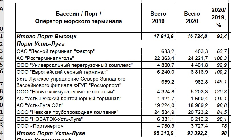 v_gildenberg: Саша, ну тут объяснение очень простое. Новгородский Акрон всю жизнь отправлял свои грузы через порты Прибалтики, ибо портов Усть-Луга и Высоцк еще не существовало. А Большой порт СПБ не работал и не работает с минеральными грузами. Да и Устье-Луга не работает.