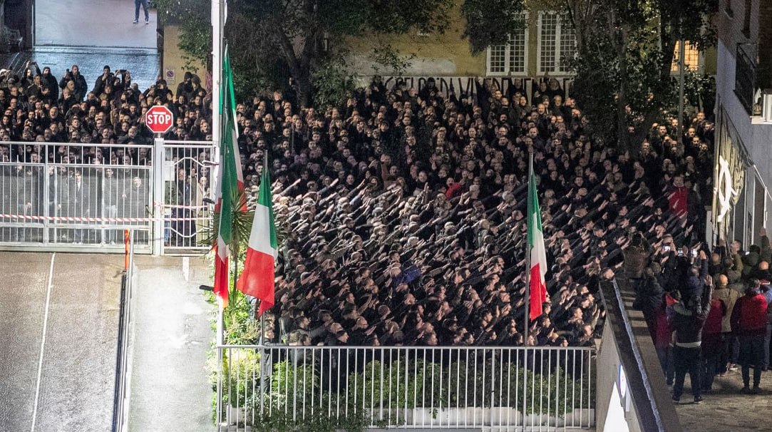 Все это произошло на фоне другого скандального выступления Casa Pound в начале января. Это были очередные поминки убитых в 1970-х фашистов, на которых вскидывали руки около 150 членов партии.