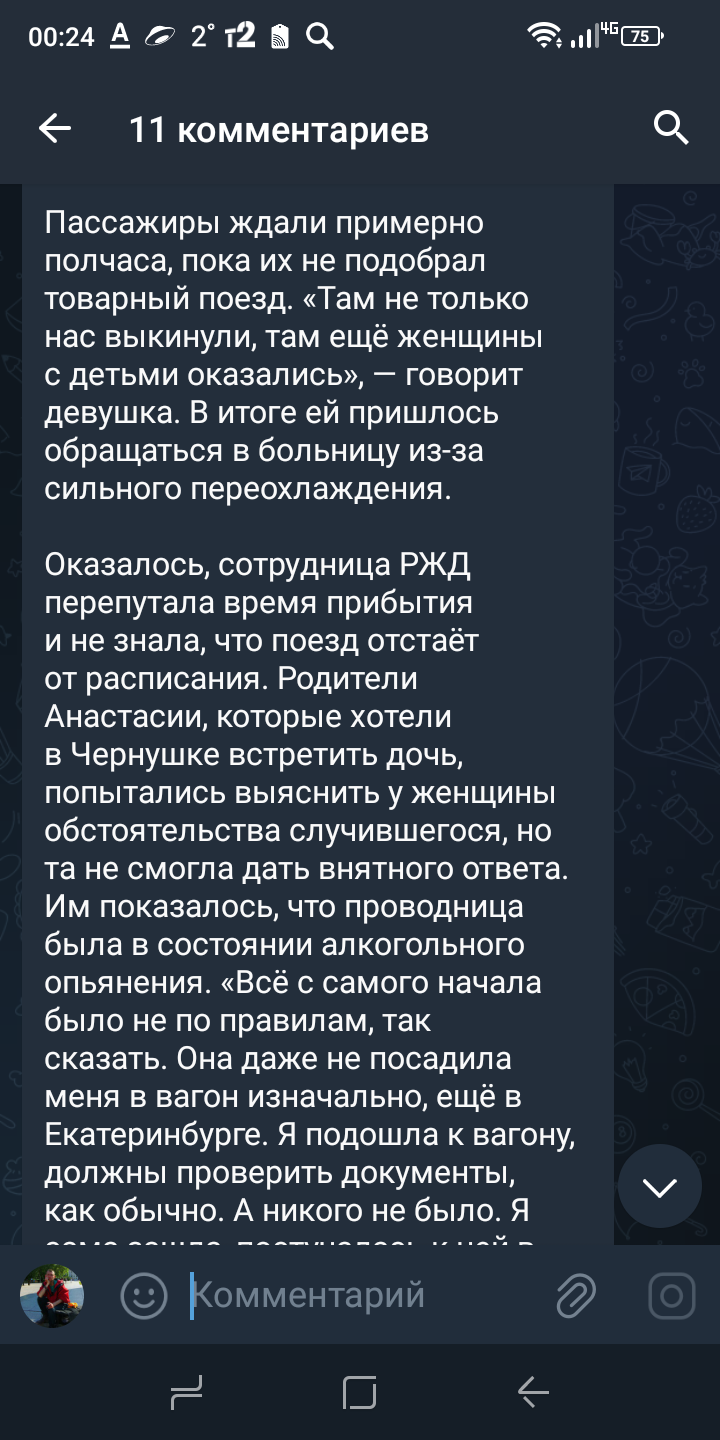 Ранее пассажиры рассказали пабликам, что их высадил проводник раньше времени на ошибочной станции, им пришлось идти через лес.