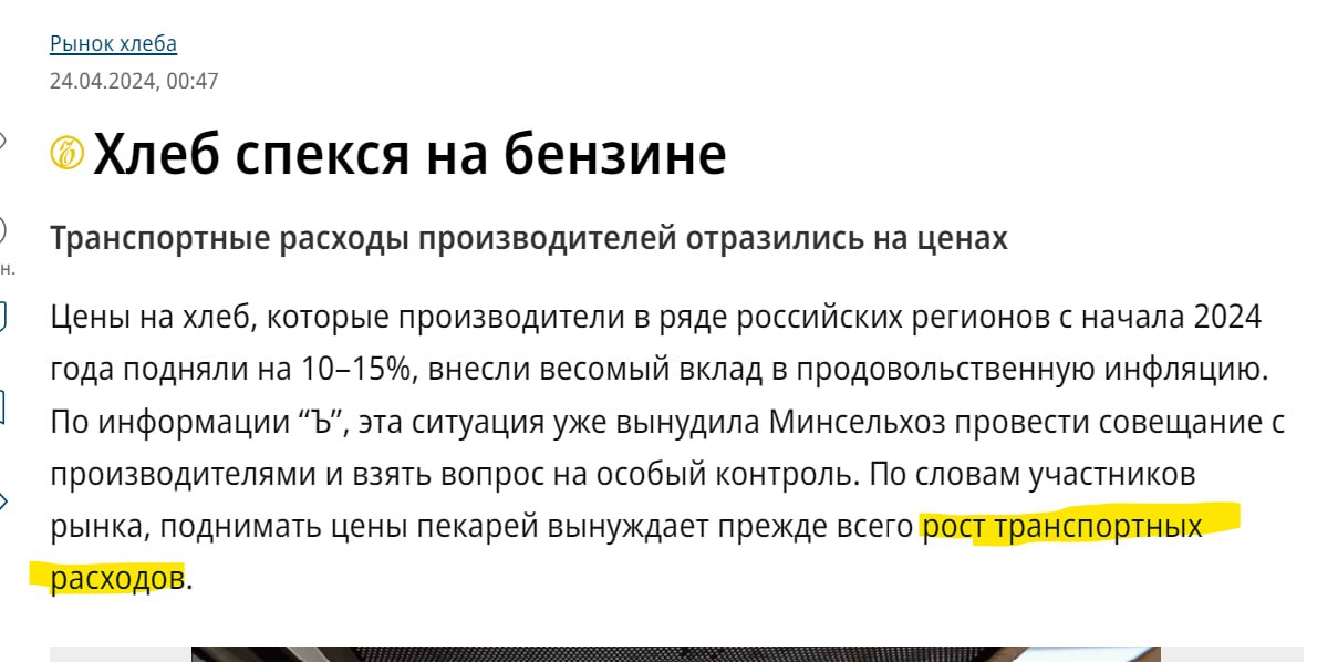 Зачем я вам об этом напоминаю!? . Хлебопеки, руки и головы растеряли - и побежали плакаться. Приютил всех Коммерсант: материал Хлеб спекся на бензине. Транспортные расходы производителей отразились на ценах :=-O:
