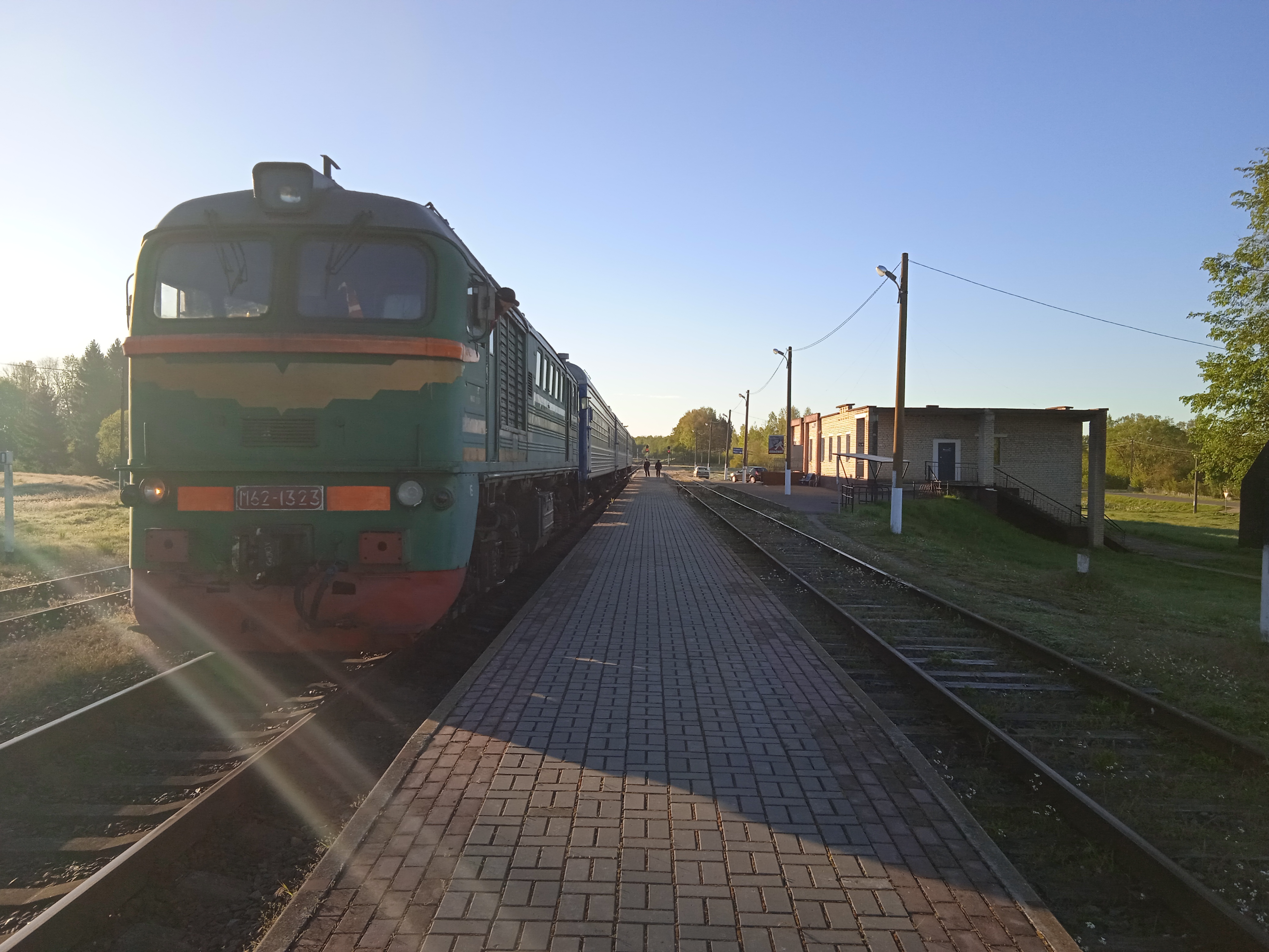Спросил у машинистов, остаются ли они здесь - сказали да. Пошел пешком в поселок, людей никого, 7 утра воскресенье, тем более сегодня тоже выходной у них.