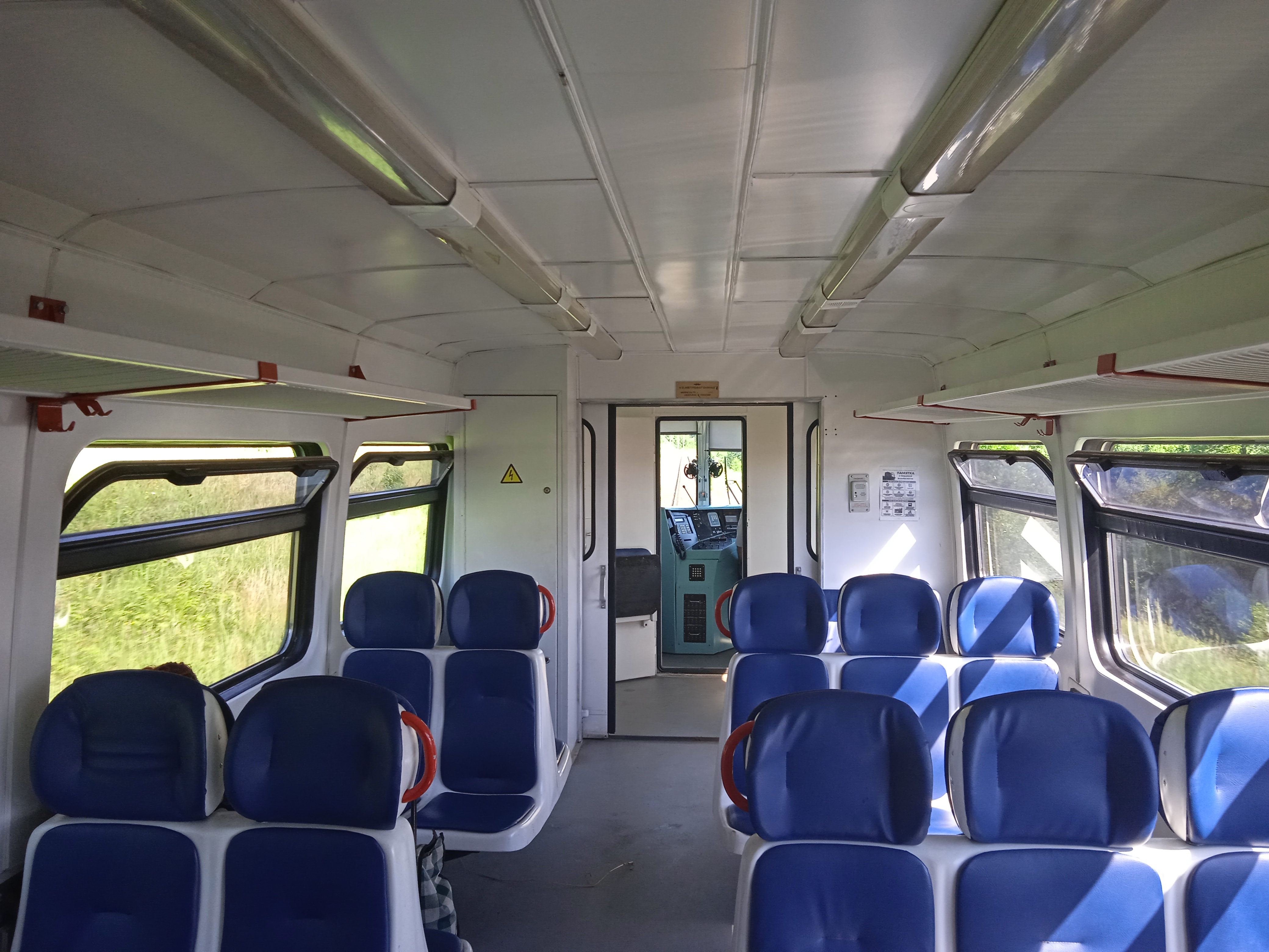 Выехал как обычно со Сходни электричкой в Тверь, последней. В Твери через 15 минут была посадка на поезд 42, удалось таки за полтора дня выхватить верхнее место в плацкарте. Прибыл он на южный путь к высокой платформе, в голове были туристические вагоны с рестораном, не менее трех. После посадки поехал в тех парк, видимо он тоже с южной стороны от главных путей находился. Далее заснул, проснулся уже перед Новгородом. С утра уже было жарко, не менее 25 градусов. На пересадку был всего час, я прошелся по тоннелю от вокзала в спальный микрорайон, далее обошел его и через переезд вернулся на ж.д вокзал. Меня ждала Рашка №1, уже подзабитая дачниками и велосипедистами, все выходили постепенно куда-то в заросшую посадку. Линия до Батецкой сплошные дебри. В Батецкой при смене кабины помошник, кассирша и я все устремились в туалет в здании вокзала)