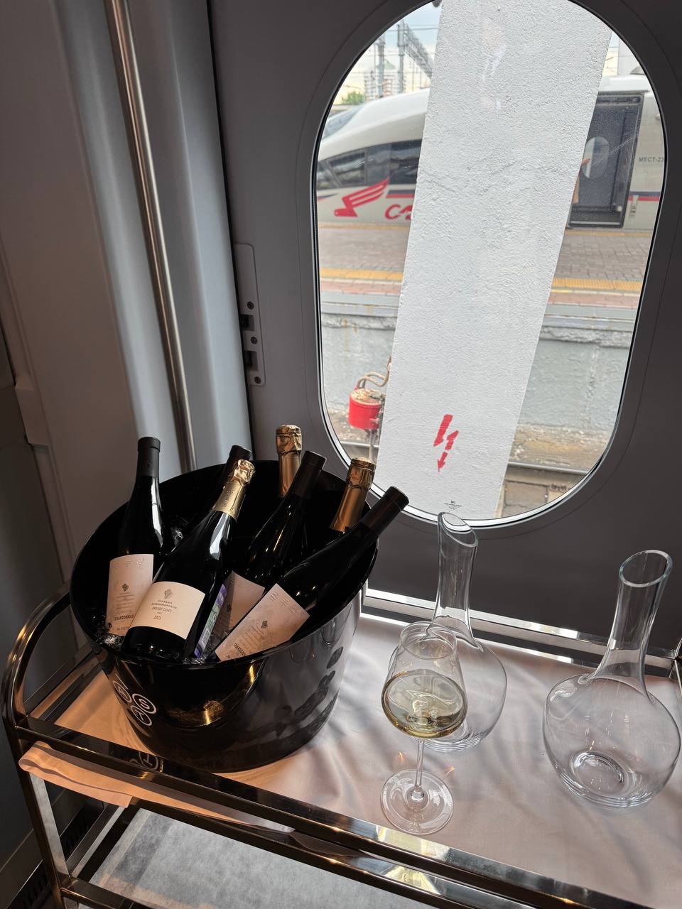 17 июня - первый день неофициальной программы ПМЭФ. Начнется она уже днём на Ленинградском вокзале в Москве. Оттуда отправится легендарный уже вип-вагон Сапсана, который прицепят к нему Росконгресс и Российский винодельческий форум. Особый вагон всего на 18 мест. В нём первые лица компаний-партнеров ПМЭФ в узком кругу проведут дегустацию лучших вин "Усадьбы Дивноморское" под живую классическую музыку и изысканную еду. Вина представит лично коммерческий директор "Усадьбы" Антон Алимов. Под каждое из девяти вин подготовил сеты новомодный ресторан Mas с Патриков. А протеже Кустурицы ямальская скрипачка Зоя Пенькова дополнит всё музыкой, специально подобранной к каждому вину. Нам, конечно, тоже досталось приглашение (нет) и меню, и мы, опасаясь гнева организаторов, его публикуем.