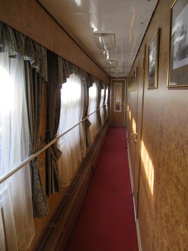 Это необычный вагон. Количество купе меньше стандартного. Картины на стенах. Двери распашные как в люксе. Типичный кастом-турист.Вагон самый обычный со светлым пластиком внутри. Как сказала тётенька из турфирмы, купить туда билет обычному пассажиру нельзя, только через турфирму в составе ОГ.