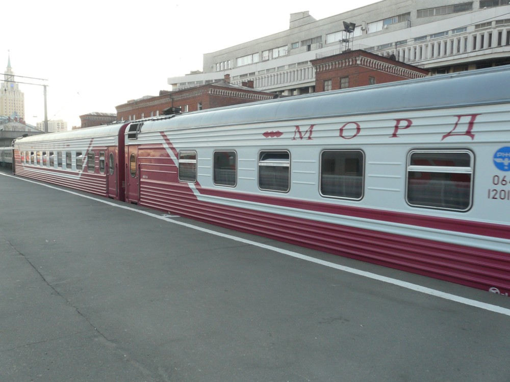 Почти во всем согласен с предыдущим автором, состав разношерстный - Сура (первый купейный вагон), Мордовия (большинство купешек), Жигули (СВ), p/d (штаб и плацки). Купе - трансформеры, кроме штабного (ТВЗ чуть постарше, с коричневым пластиком в салоне), вся плацкартная группа и вагон СВ - премиумной серии.