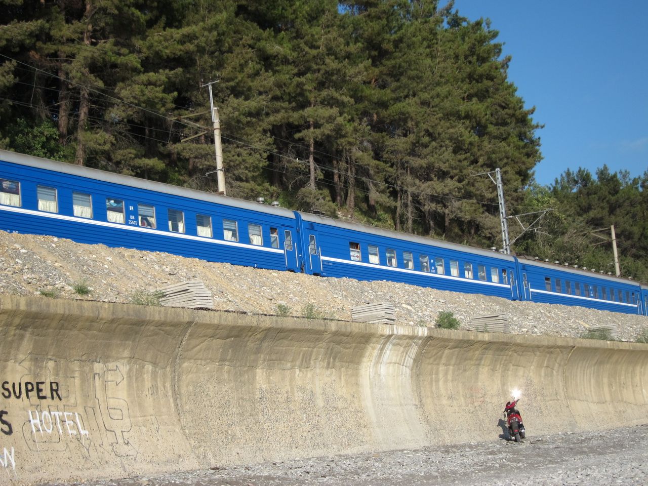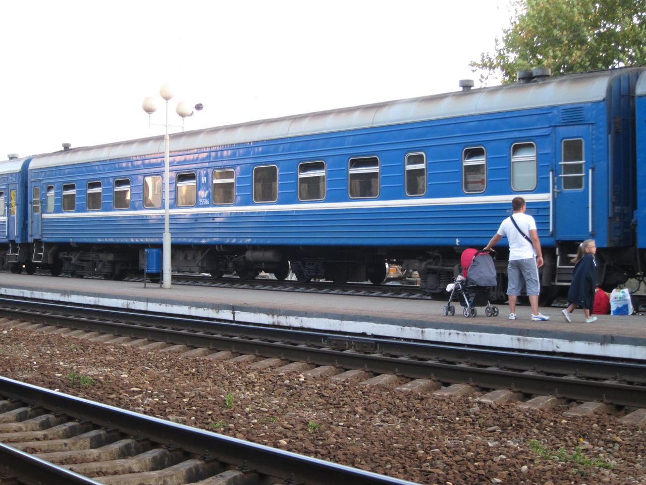 2. Внешний вид. Основная часть состава (№ 1-8) состоит из белорусских вагонов стандартной синей окраски с белым поясом. Имеется также 4 прицепных вагона РЖД сообщением Брянск-Адлер: один зеленых купейный амендорф (№ 28), один тверской зеленый плацкарт (№ 29) и два днепропетровских КВР-плацкарта в голубой с белым фирменной окраске от поезда Брянск-Москва (№ 30, 31). В составе также белорусские беспересадочные вагоны Минск-Адлер (№ 26, 27), Могилев-Адлер (№ 24) и Гродно-Адлер (№19). Порядок расположения вагонов в поезде несколько хаотичен среди прицепных/беспересадочных вагонов: 28,29,30,31,1,2,3,4,5,6,7,8,19,27,26,24. Среди белорусских вагонов плацкартные - старые КВЗ, штабной - амендорф после КВР, все остальные купейные вагоны старые тверские. Тут я вообще не совсем понял, что к чему. Внутри купейные вагоны очень древние, рамы деревянные, покрашенные сотым слоем красно-коричневой краски. Замки в купе не трехгранные, а под плоский ключ. Т.е., судя по внутреннему состоянию, вагоны очень древние, с далеких советских времен. И тем не менее на шильдах всех вагонов стоит "ТВЕРЬ"! Год выпуска под слоями краски прочесть невозможно. Тут для меня загадка. В советские времена ТВЕРИ-то еще не было, а калининский завод купейники не делал. Откуда тогда взялись такие вагоны?