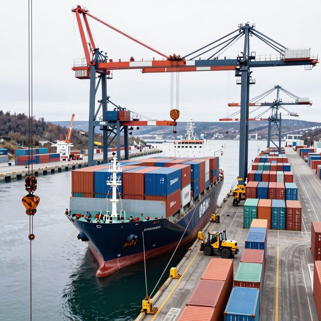 Фантастические вещи. Вы реально даже не смотрите на ИИ-фото, которые берете? Здесь конечно совсем смешное. Трехстрелочные краны с опорой на судно с одной стороны и RTG с другой, судовая рубка на причале с воткнутым судовым краном в нее. Красота. Не делайте так - не взрывайте мозг себе и читателям!