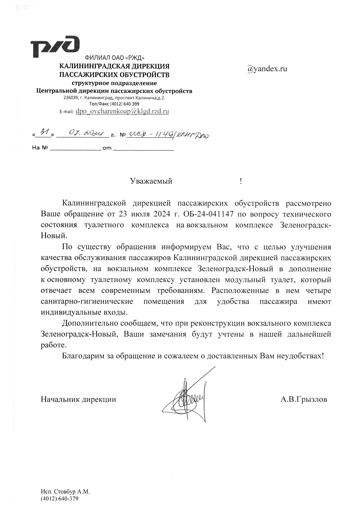 Прикладываю отписку по данному вопросу