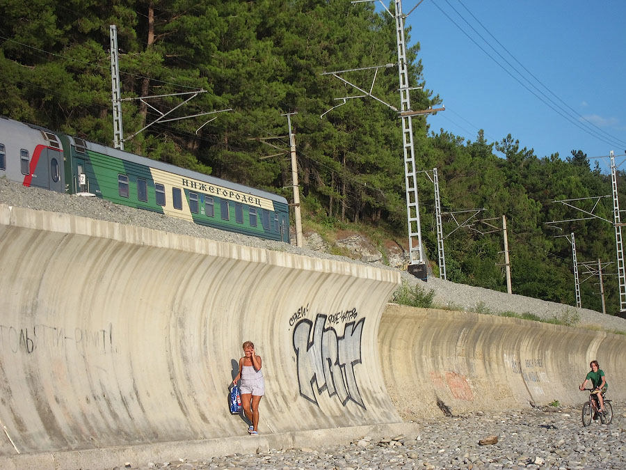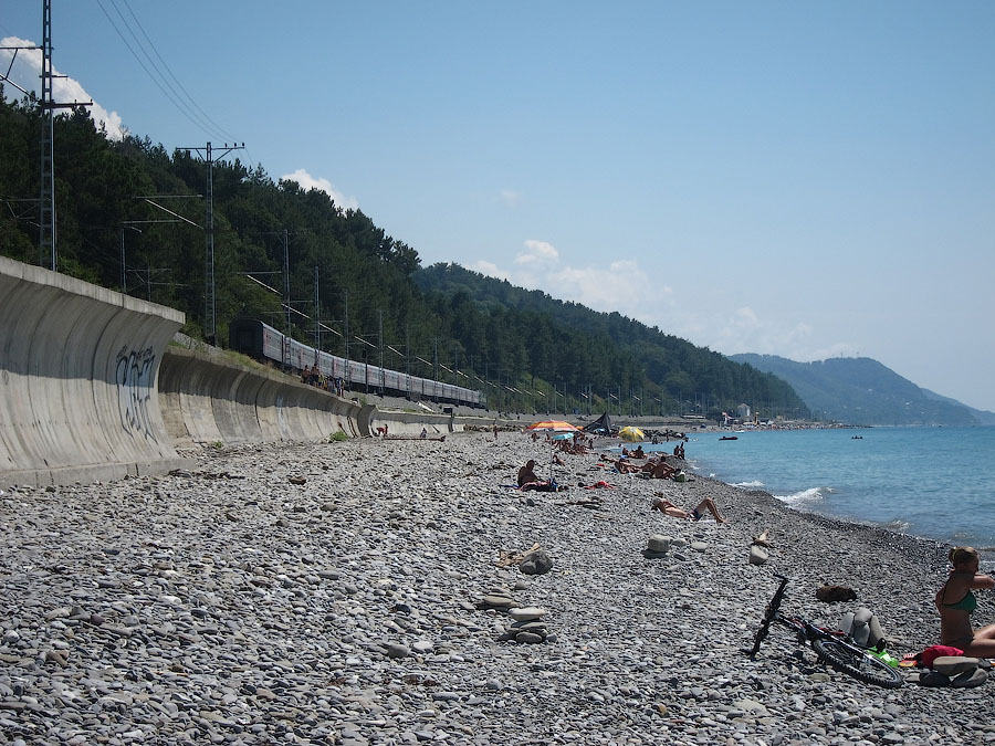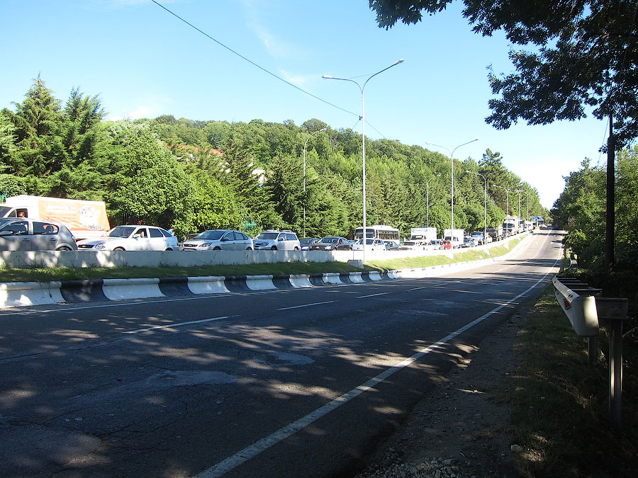 В понедельник узнаю точное время: вчера машина отвезла гида сразу домой без заезда в санаторий, а сегодня-завтра у неё выходные. Впрочем, когда ехали на такси из центра посёлка в начале десятого вечера Сочинское шоссе в противоположном направлении привычно стояло в говно... Еще одна местная мадам разговаривала громко по телефону в электропоезде: говорила, что ехала из Гагры, просила, чтобы разогревали еду из холодильника, и обратила внимание на ужаснейшие пробища по дороге и на границе.П.Д.С.:Соревнование электропоезд vs авто (водитель+гид) закончилось чистой победой ж/д транспорта, я так понимаю?