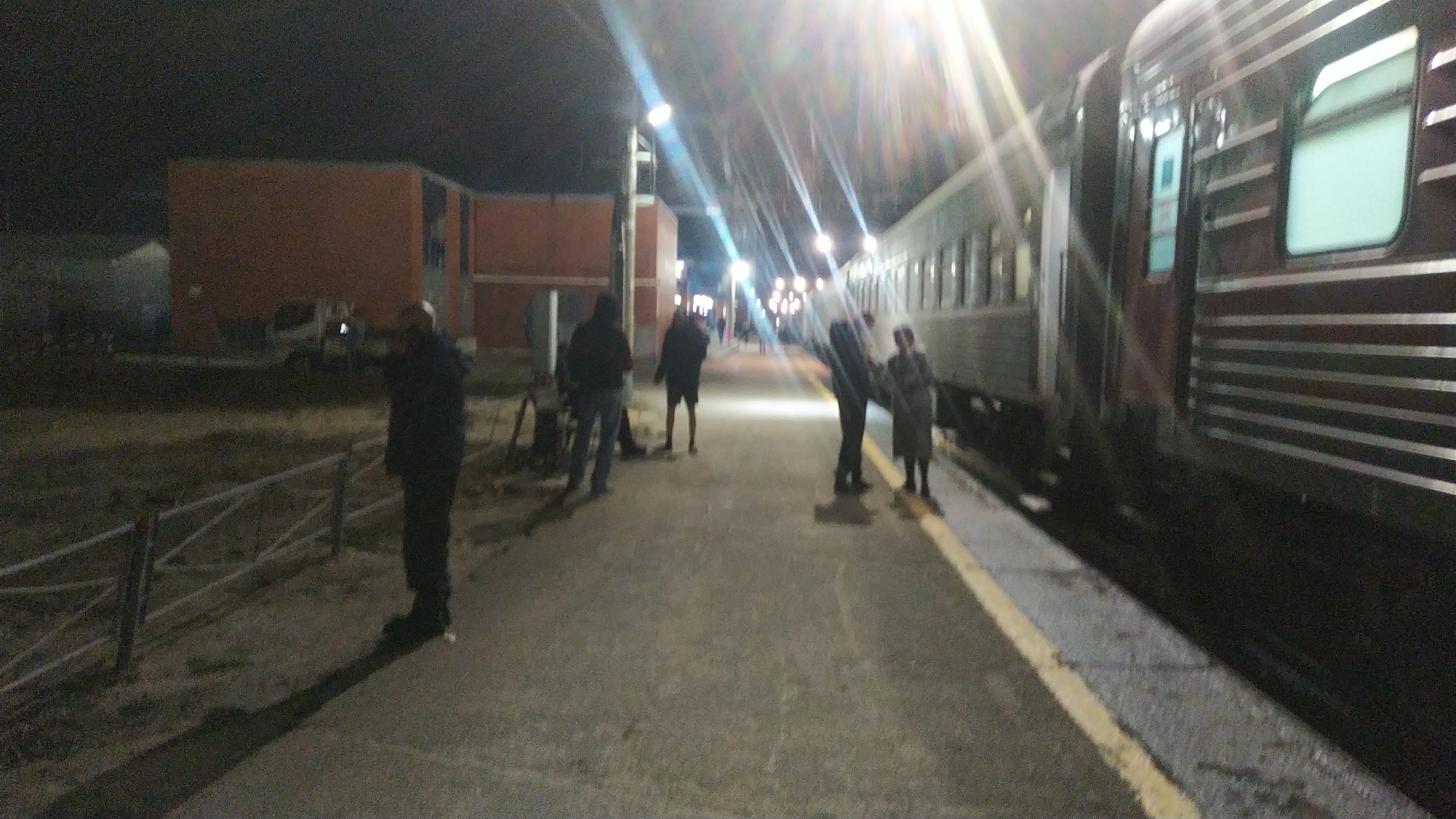 Проехали Таксимо (15:55-16:58 мск). Значительная высадка вахтовиков и незначительная посадка. Как обычно - на совмещëнной с вокзалом автостанции, их ждали маршрутки и легковушки в Бодайбо и куда-то ещё. Довольно быстро все уехали. Здесь прохладненько, +7 всего. Сходил в посёлок, видел бухающих местных около подъездов... В двух работающих магазинах через дорогу от вокзала, толкучка и очередь с улицы из пассажиров. Вернулся на платформу и оставшееся время ходил вдоль поезда... Тем временем с хвоста выцепили 34-й вагон, а багажный прицепили обратно. И ЭП1 поменялся на Фантомаса.