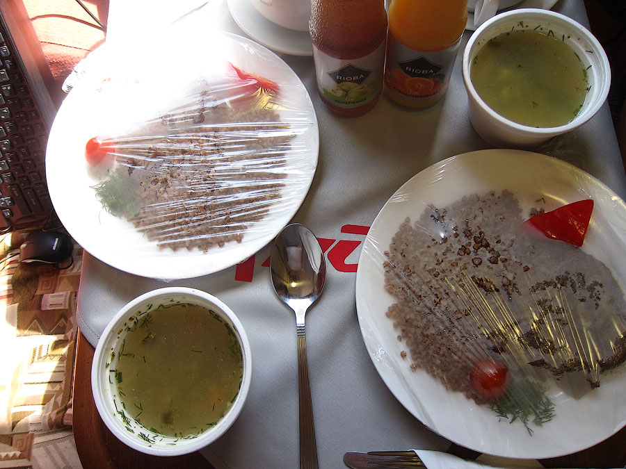 Около 13:00 (за пару минут до прибытия на Рязань-2) принесли обед из ресторана (овощной + говядина с гречкой + сок). Еда приличная, хоть и существенно беднее нежели когда-то при Горьковской РДОП, и в оговоренное время без срывов как в прошлом году.
