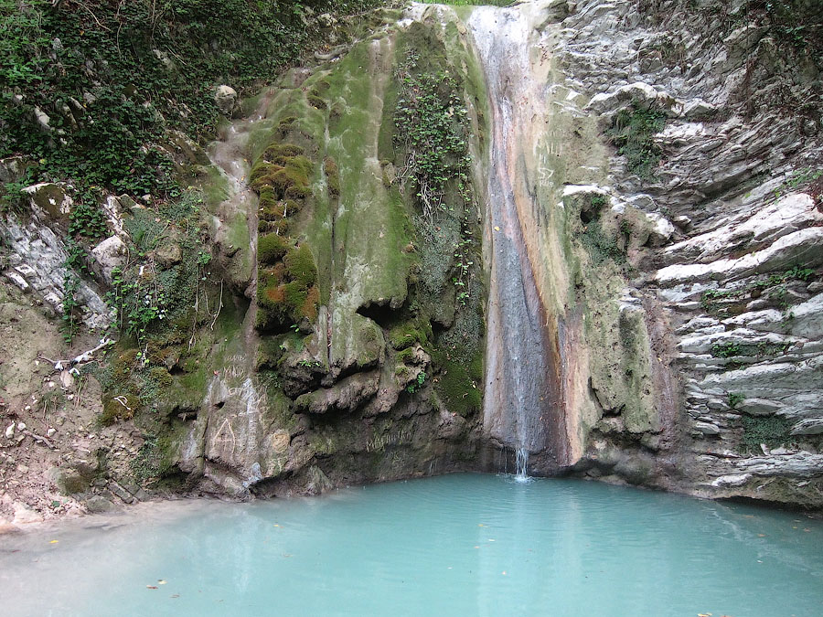 Далее вверх по тропинке и мосту поднимаемся к живописному трехкаскадному водопаду общей высотой около 15 метров.