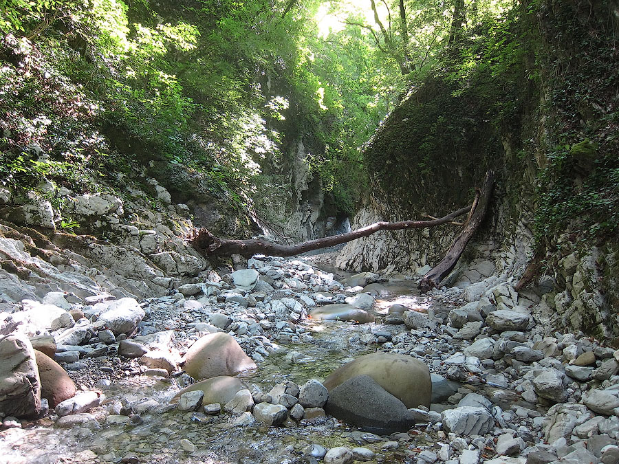 Ущелье украшено слоистыми известняками мелового периода. Над обрывами возвышаются тенистые дубы, клены, каштаны, грабы.